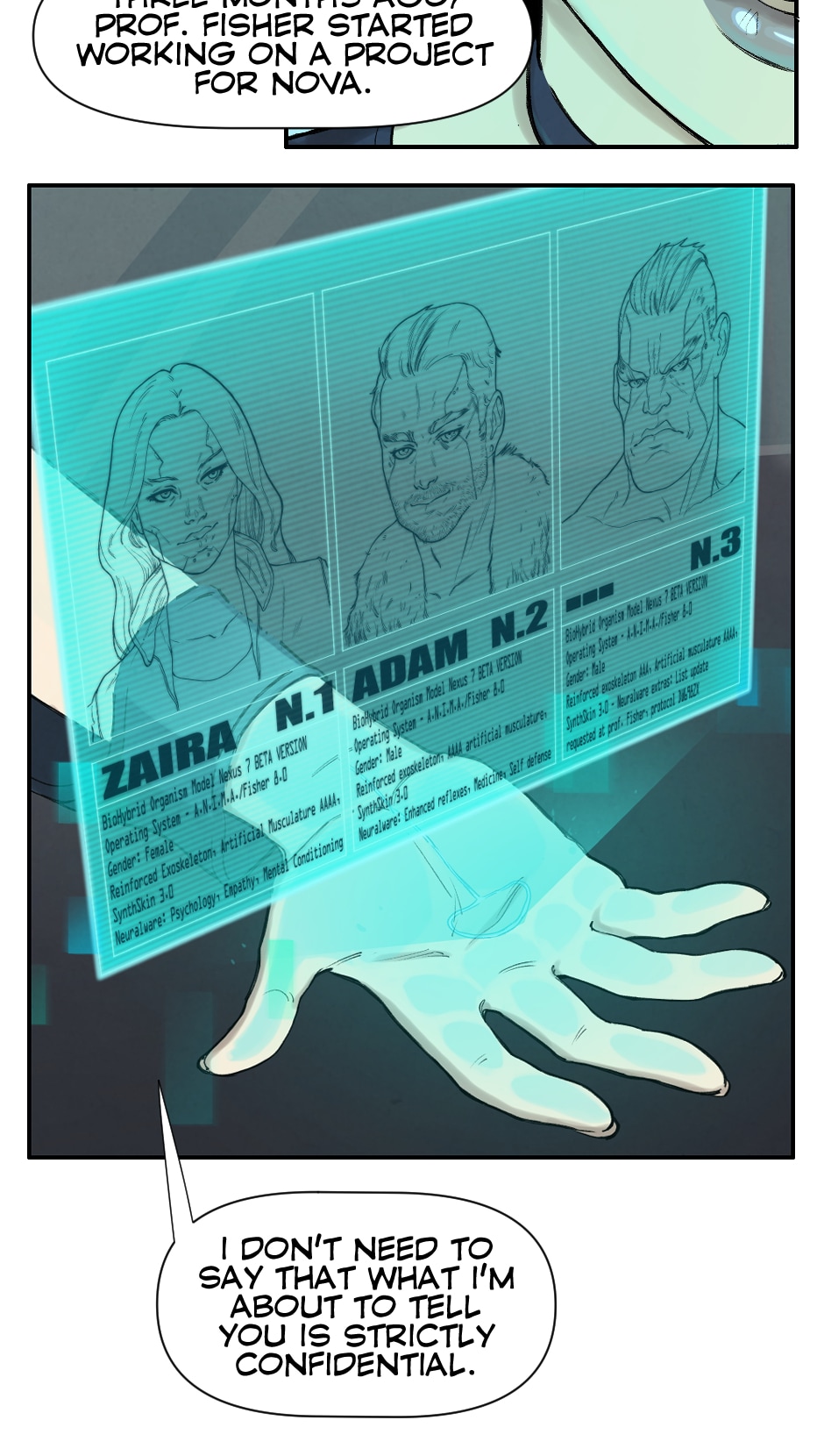 Replicants, or Reps, coexist in the society in order to improve human life. Some consider them an advanced life form. Some openly oppose them, like the Church of the True Man. Special agent Chris Walker understands right away that it will not be an easy case when NOVA hires him to track down the three specimens that escaped from the Corporation’s labs. Three evolved, upgraded and dangerous creatures that, while escaping, kidnapped their brilliant creator, Dr. Fisher, and his young daughter Sybilla.