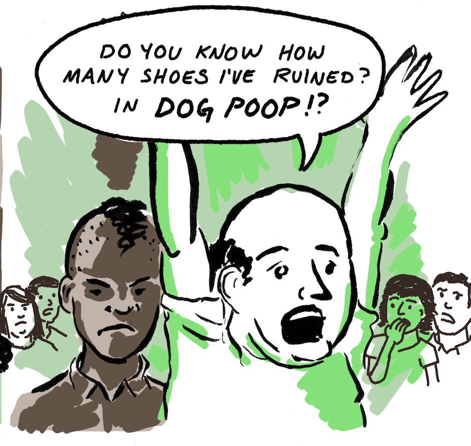 A man steps in poop. His day is ruined. So he takes it out on the closest dog owner he can, setting into motion a chain of events that could tear apart his city.