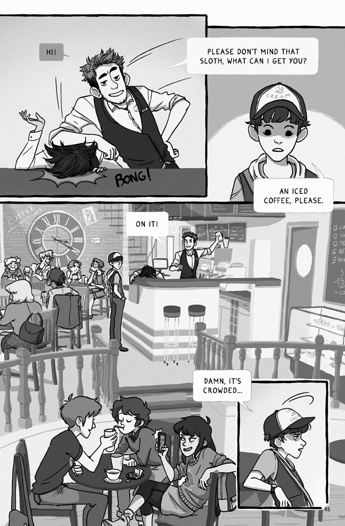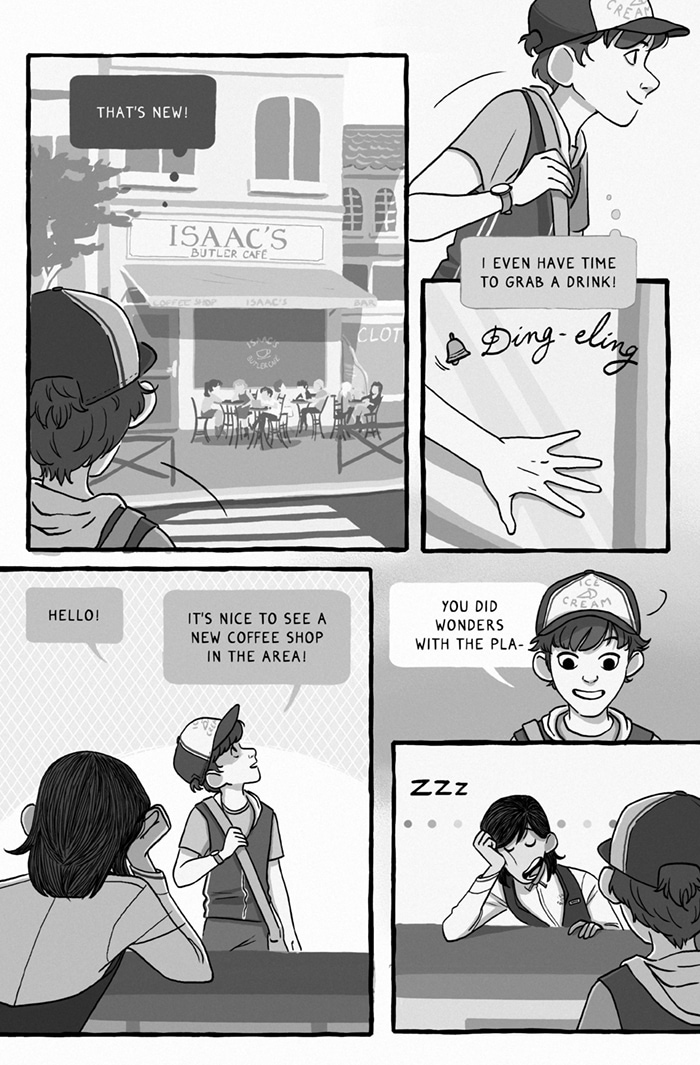 As you can see in the last page, there will be a few cameos in this chapter :) On this one, they're from Jamie - http://tapastic.com/series/Jamie - and This is not fiction