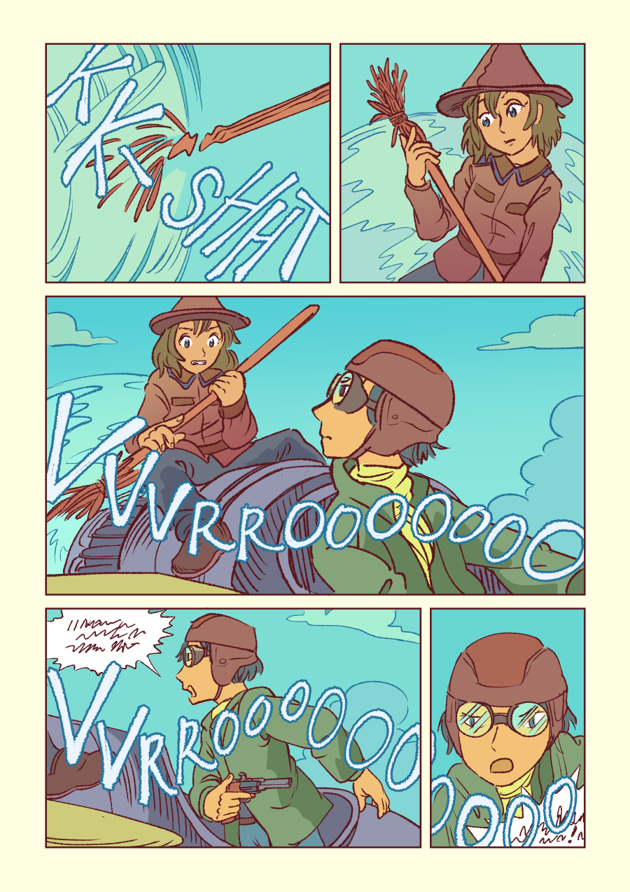 Evie is a young witch fighting for the Atlantic-English Empire. On the mysterious '8th Continent', she crosses paths with Martin, a pilot in the partisan resistance. The tumultuous events of the early 20th century make them unlikely allies. Updates every Monday and Thursday!