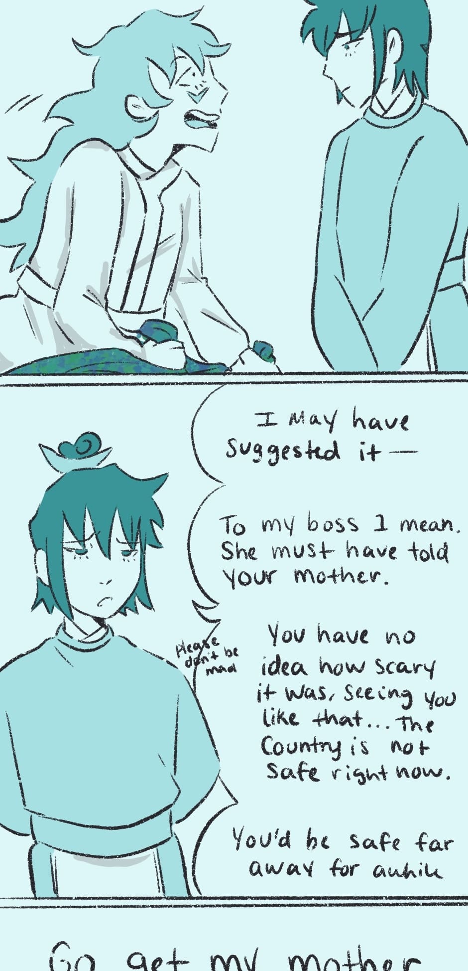 Sorry for the short chapter this week. My birthday was the 19th, so I took a break, and I fell very ill this past week and haven’t been able to draw much. More regular uploads soon!