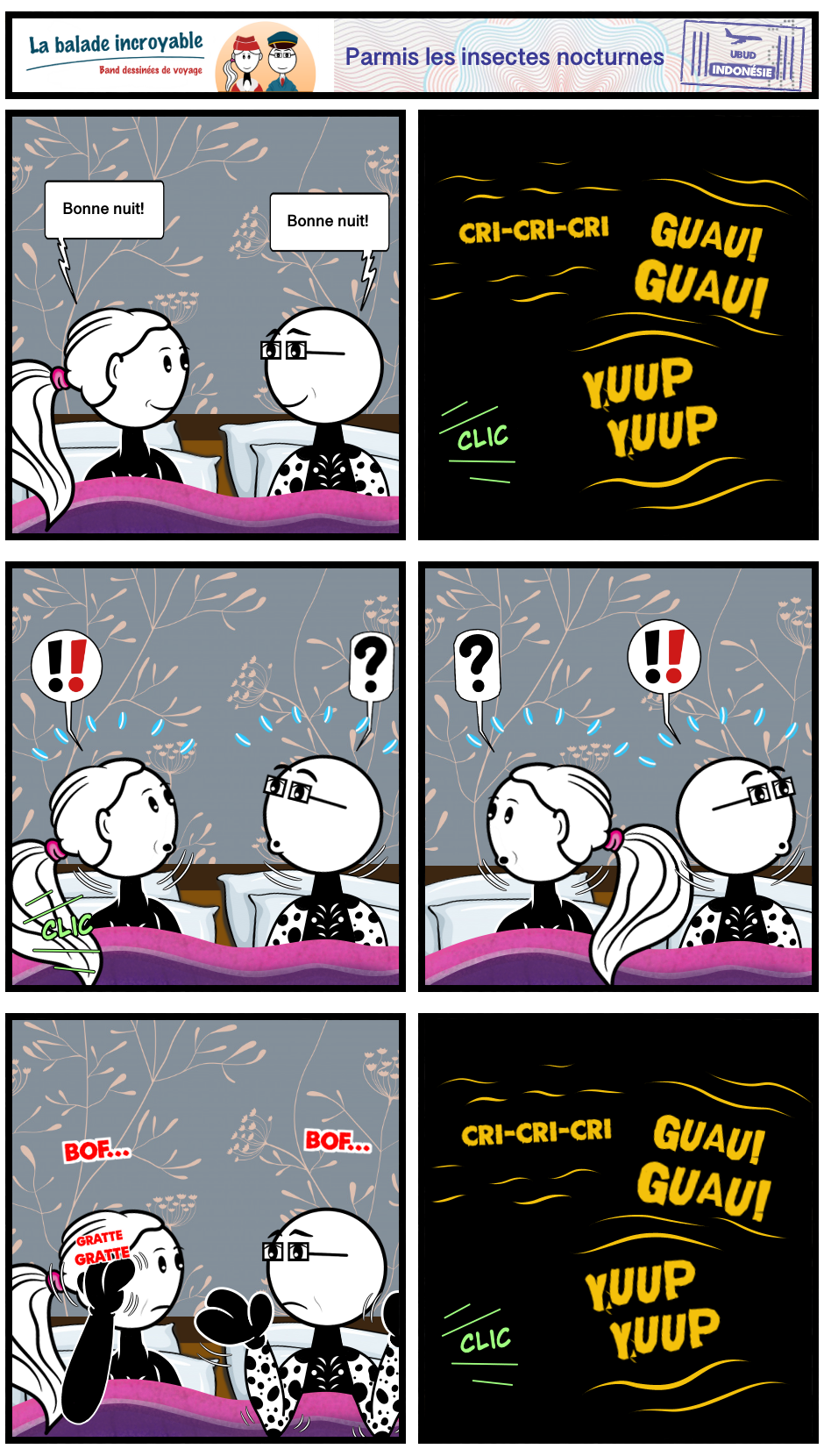 La bande dessinée de voyage La balade incroyable dépeint avec humour des incidents de voyage réels avec l'aide de Sophie et Phil, deux voyageurs expérimentés parcourant le monde.