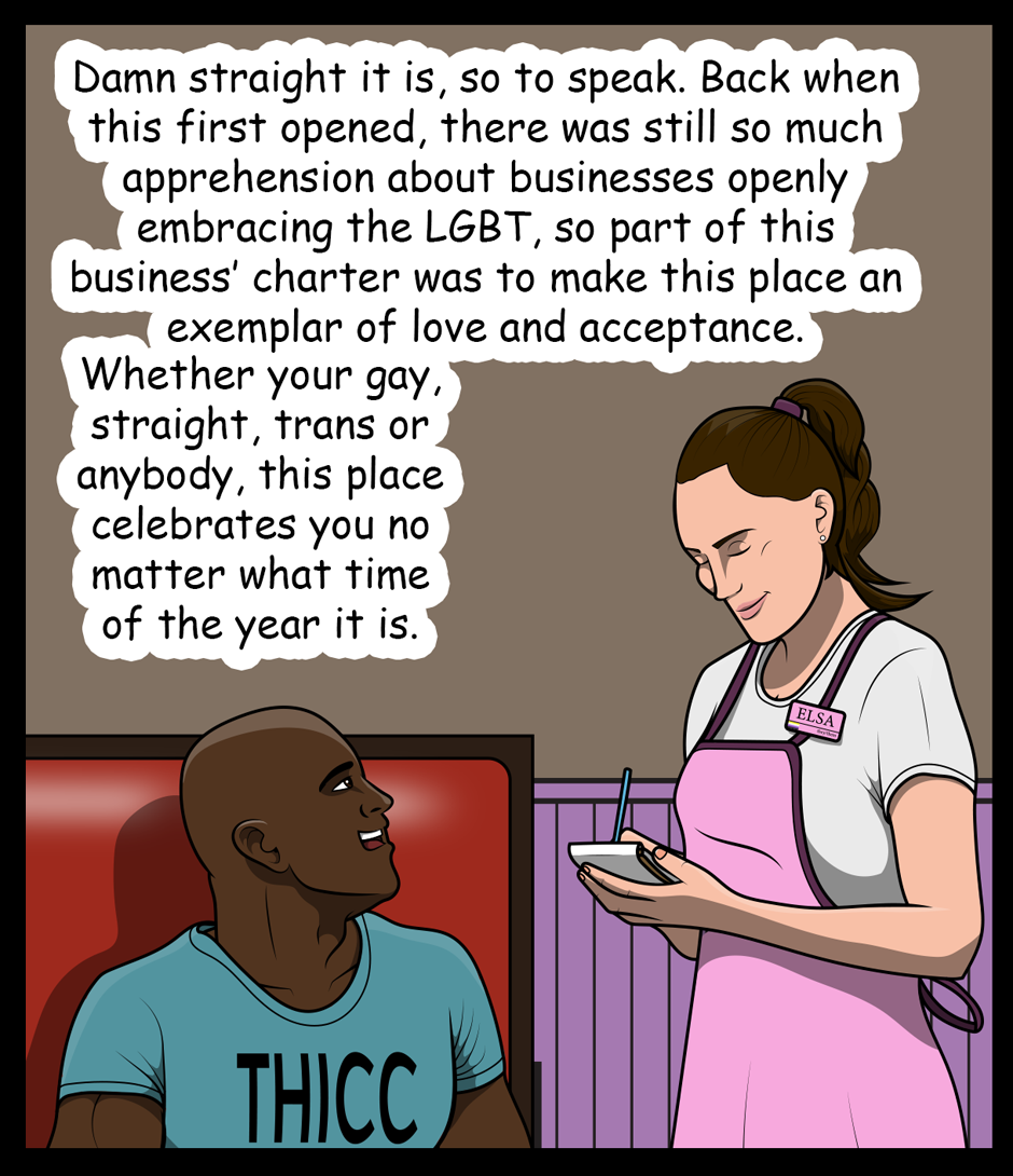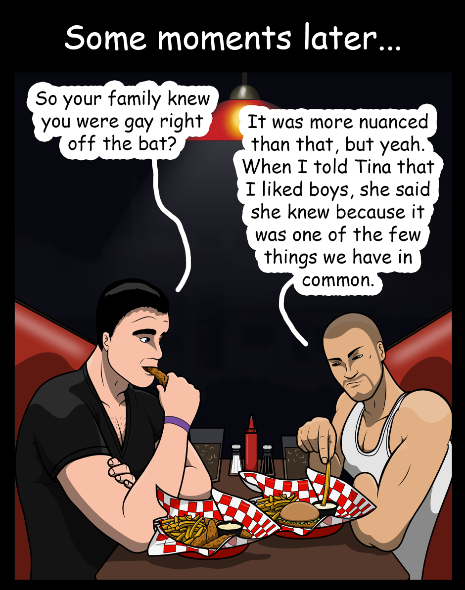 After winning the Mister Y "pageant," Tay invites Jay to the a nearby chicken diner. Winner winner chicken dinner, henny!