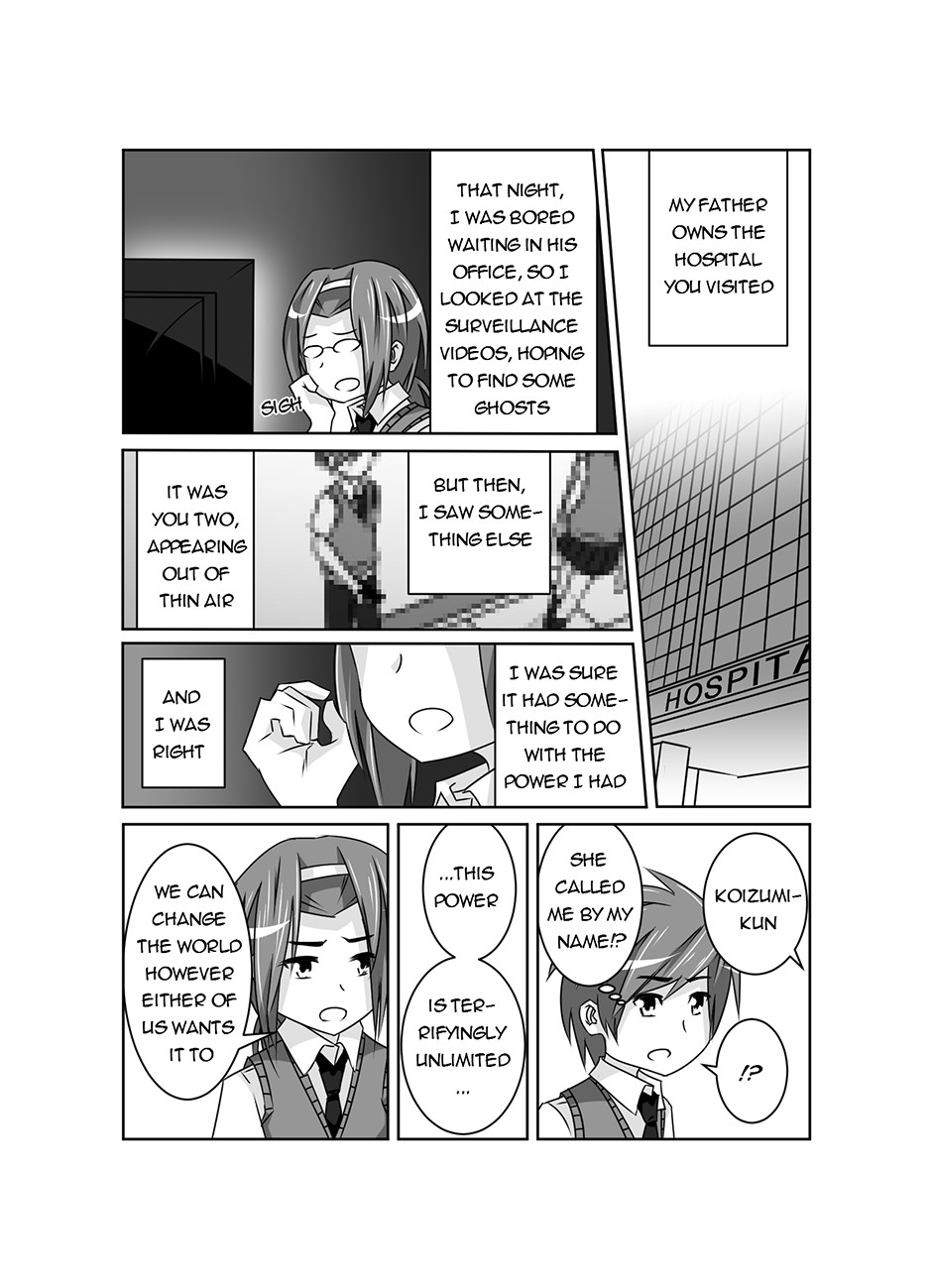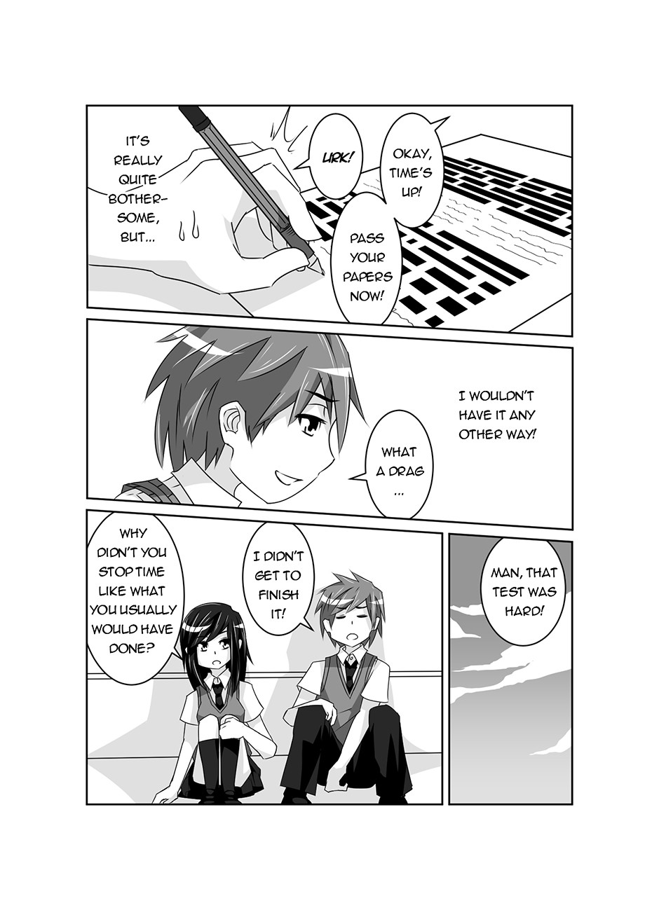 Pause is a story about a boy, Yoshiro Koizumi, who can freeze time whenever he wants to. When he suddenly meets a girl who is unaffected by his time-freezing powers, his peaceful high school life is thrown into chaos as she discovers his dark secrets which Yoshiro only shows when time is frozen.