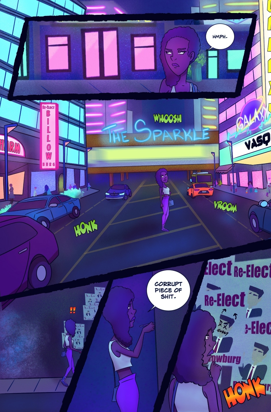 Neon Girls follows a group of mostly queer, mostly Latino high school seniors following a night of gang violence that turns the city upside down. When the cops don’t seem too pressed to take action, the girls realize it’s time for them to step up to the plate. With some recently acquired high-tech weapons, pairs of rollerblades, and no plan whatsoever, the Neon Girls are born… And they quickly learn how in over their heads they are.