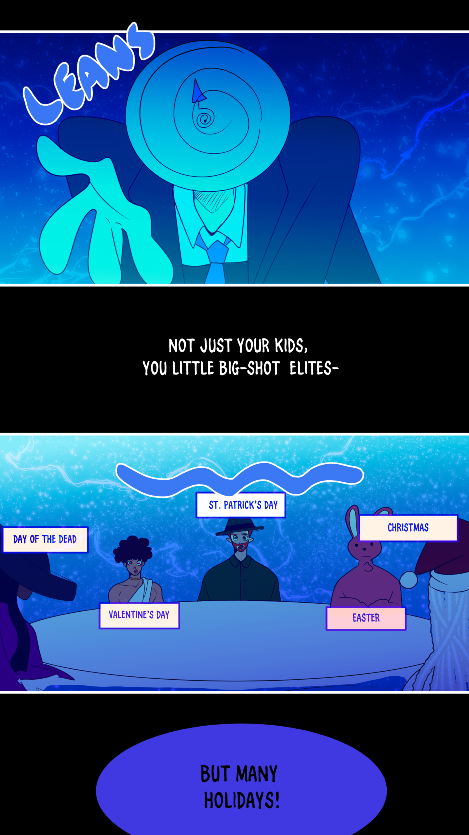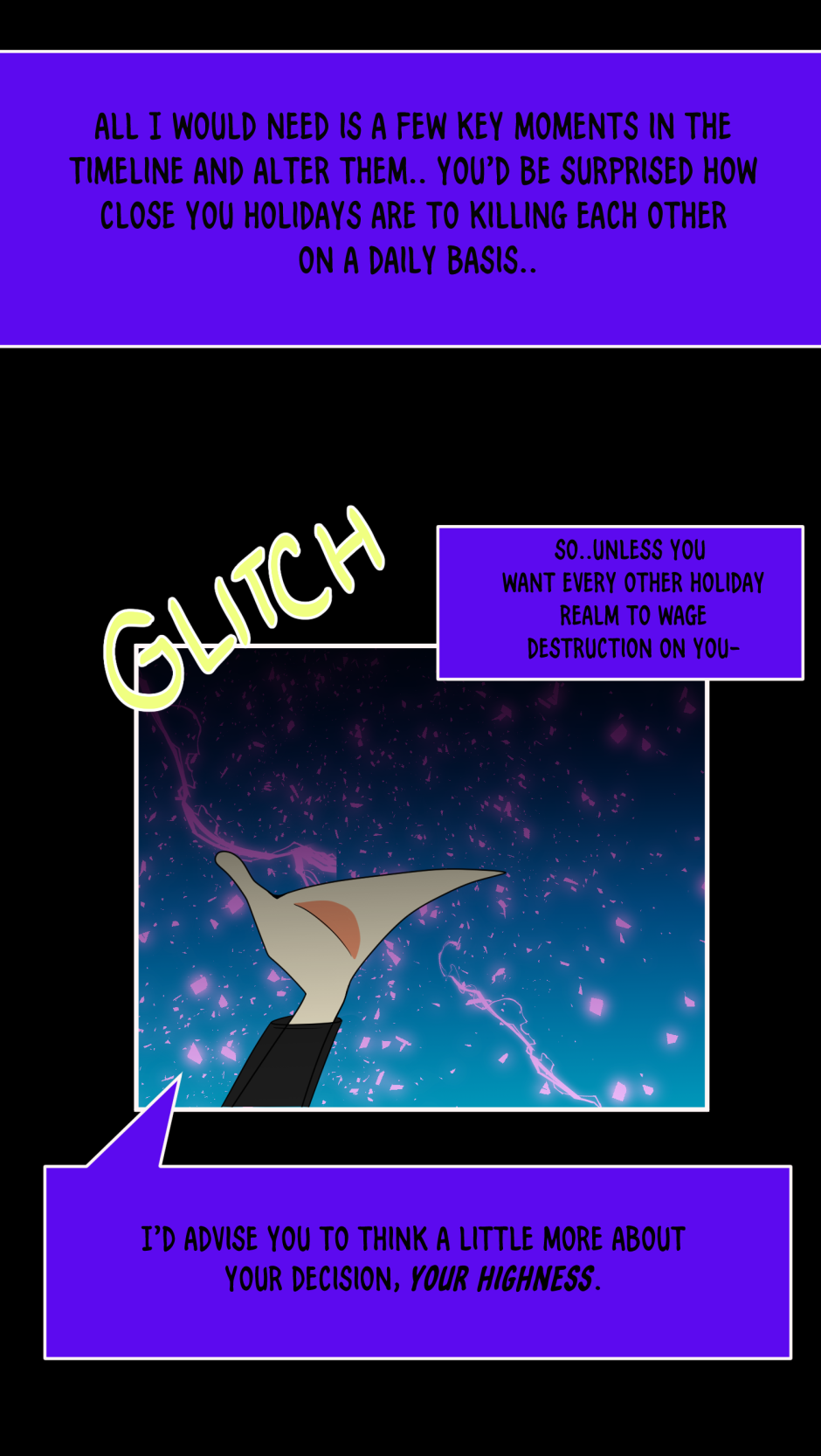 A big complicated death game where if a holiday dies, their entire world gets completely deleted.