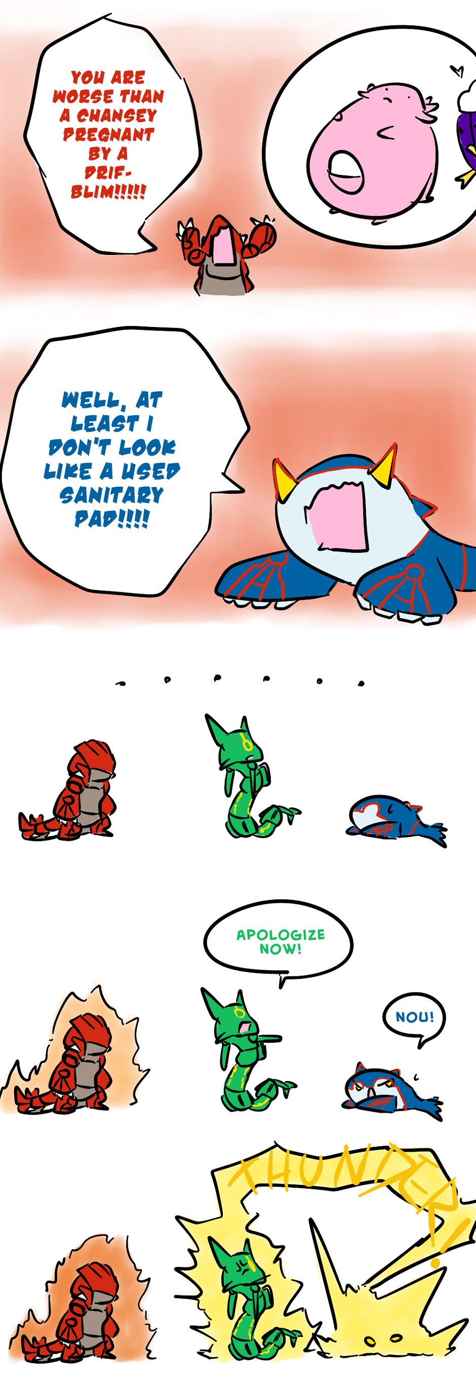 The way Kyogre and Groudon usually treat each other and how Rayquaza solves it