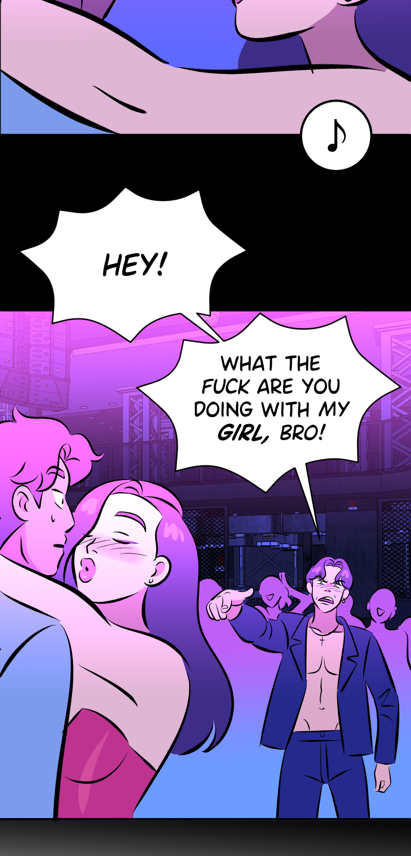 You mean, what the fuck is your girl doing sexually harassing another man. You ask someone permission first before you grind on them, that's rookie stuff right there.
