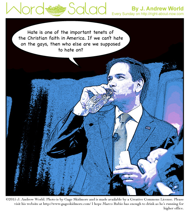 Seeing how we just celebrated Christmas, I figured I should remind people of the kind of Christianity Marco Rubio practices. I repeat this idea, we make God in our own image, so someone who imagines God as ugly as this doesn't speak very well of his character.