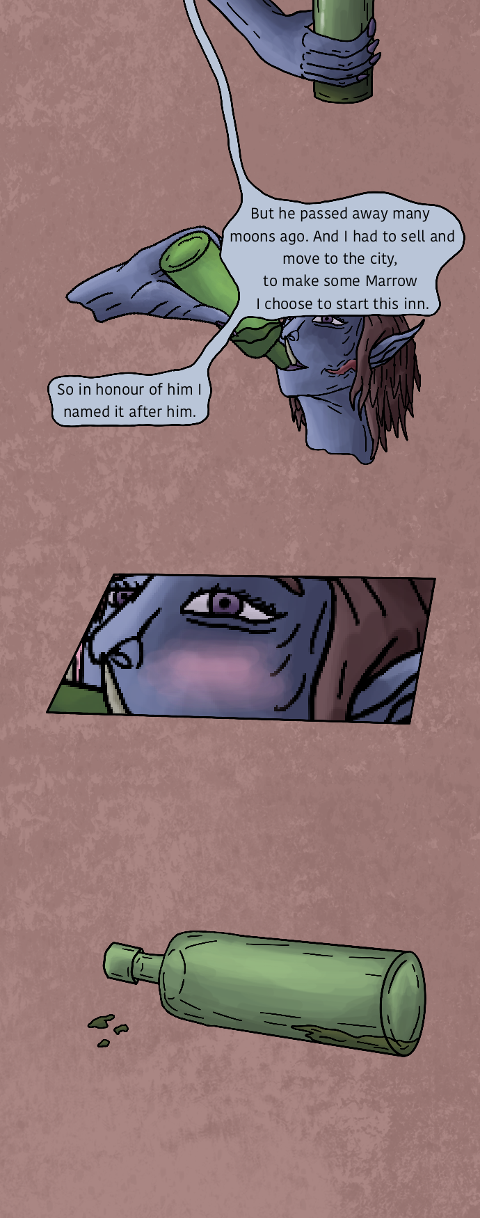 The small interaction of Leuon with the inn she plans to stay in for the night, till the alcohol takes hold.