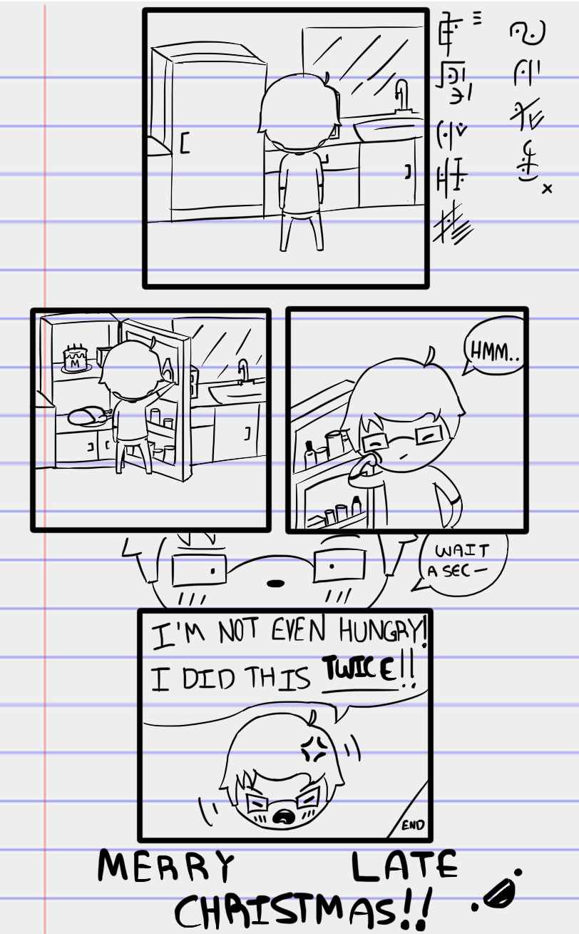 You underline the word "HUGE", "SOUL" and "TWICE" on the first and third comic, and there is a letter "M" on a cake.