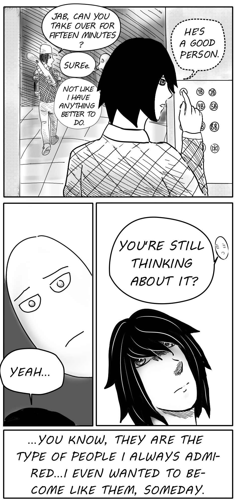 Three weeks had passed since I uploaded the previous episode(at least according to Tapas - in thruth I have no idea how many days had passed) and I don't really have a good excuse for that. Of course I could say that this episode currently has the most pages(21) and that in that time I also reuploaded (more precisely - completely remade) the first episode. From "very short prologue" it became just "a short prologue".I feel that that I have made a huge progress in some areas and in some i'm still the same, but what's important that i finally finished this episode. I'm really proud that i finally said " I'll finish and upload this episode today no matter what" and I did. Since nobody, who is reading this, knows me, i doubt they(or maybe - you?) would understand me, but this is more like a report to myself or something so it does not matter. I' m tired. Time to go to sle...