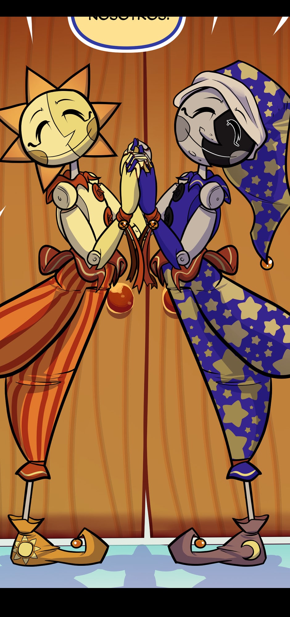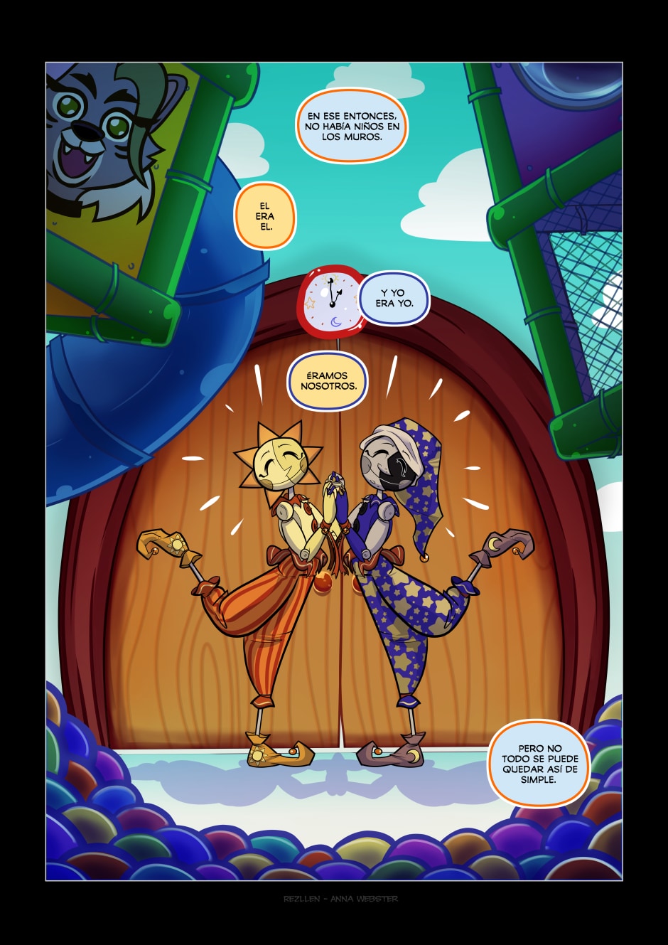 Celestial Bodies es un cómic one-shot de Rezllen (arte) y Anna Webster (guión) que imagina los orígenes de Sundrop y Moondrop de Five Nights at Freddy's: Security Breach. Requiere poco o ningún conocimiento del Deep Lore. ¡Así que no temas, superestrella! Se actualiza semanalmente.