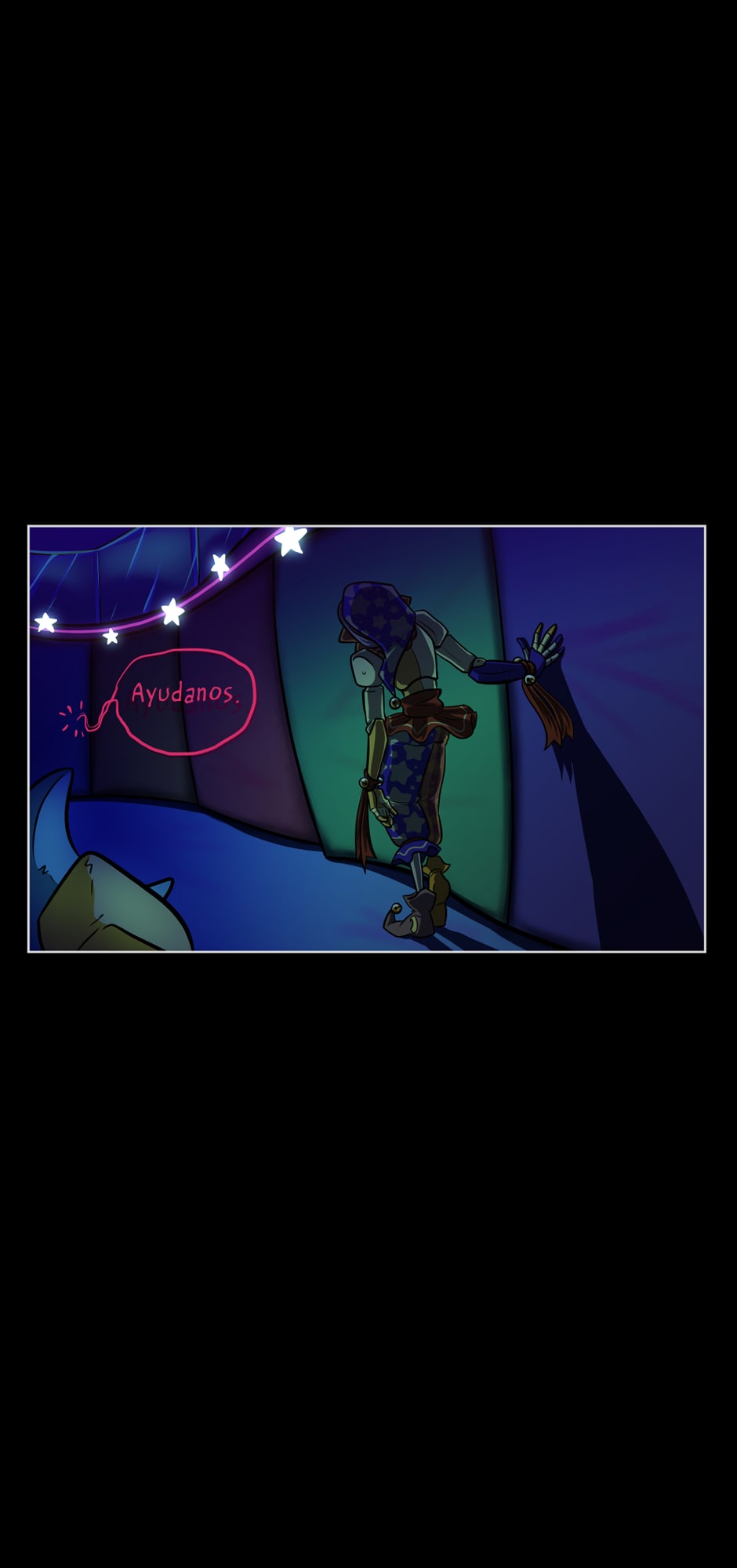 Celestial Bodies es un cómic one-shot de Rezllen (arte) y Anna Webster (guión) que imagina los orígenes de Sundrop y Moondrop de Five Nights at Freddy's: Security Breach. Requiere poco o ningún conocimiento del Deep Lore. ¡Así que no temas, superestrella! Se actualiza semanalmente.