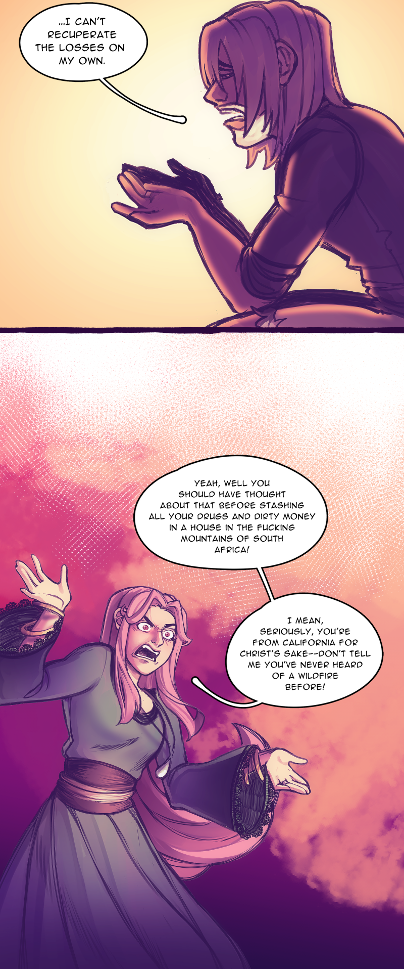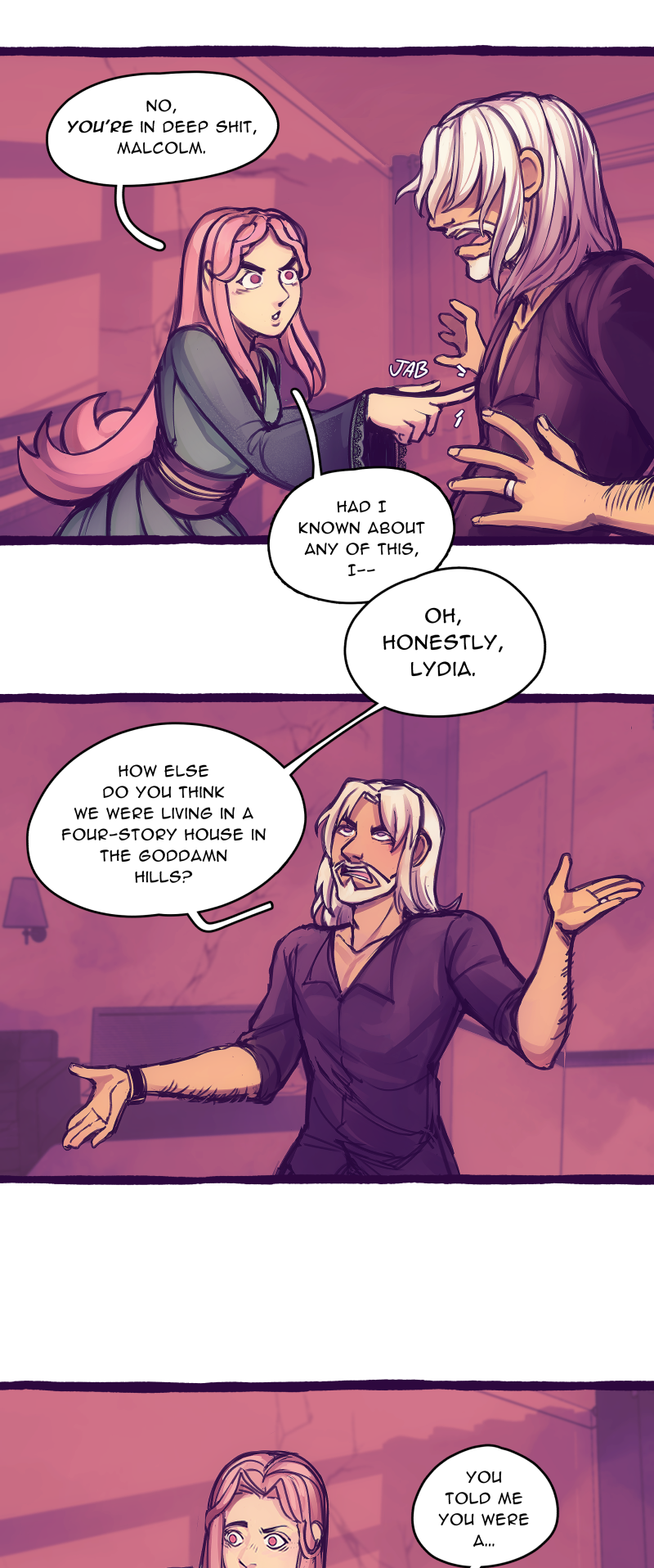 Lily in the Rough is a mature webcomic that can be classified as thriller, suspense, dark, slow burn, drama, crime fiction, and contemporary romance. It contains adult activity, harsh language, intense graphic violence, nudity, and tackles themes of emotional, physical, sexual, and drug abuse. While it does not contain explicit sexual imagery, such content will be produced via other avenues (e.g., Twitter). Viewer discretion advised.