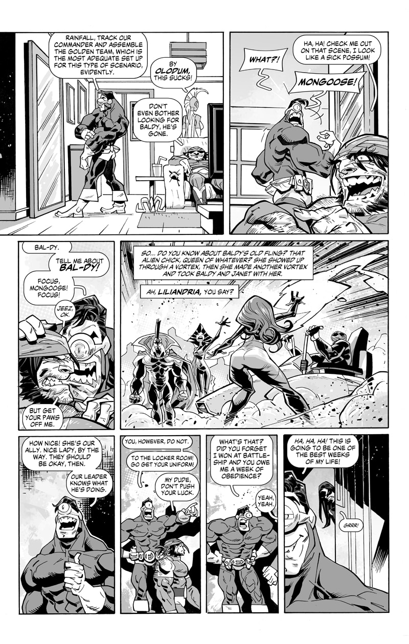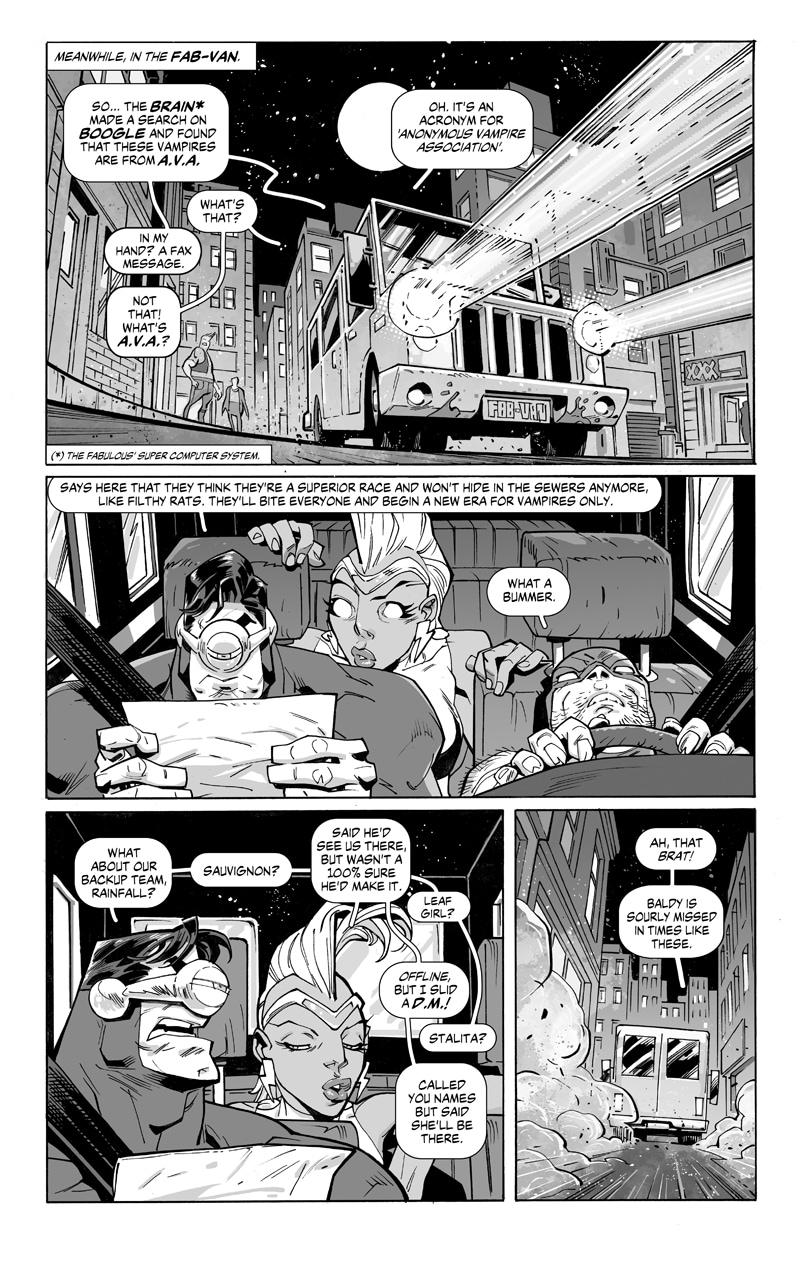A natural born leader called Eyeball, the impetuous Mongoose, the good vibes Rainfall, the misunderstood Demonico, the feisty Telegirl, the teen wonder Stalita and the almost invulnerable Metalovski, are all part of one of the most famous and greatly monetized group of heroes on the planet! Under the baton of Baldy, CEO of the team, they will defend the world and protect society’s best interests. They are the FABULOUS!