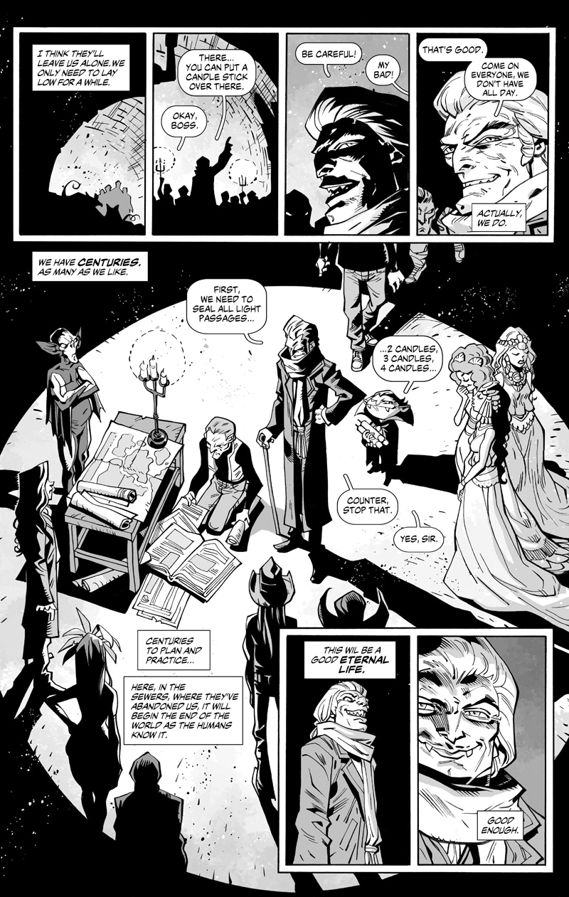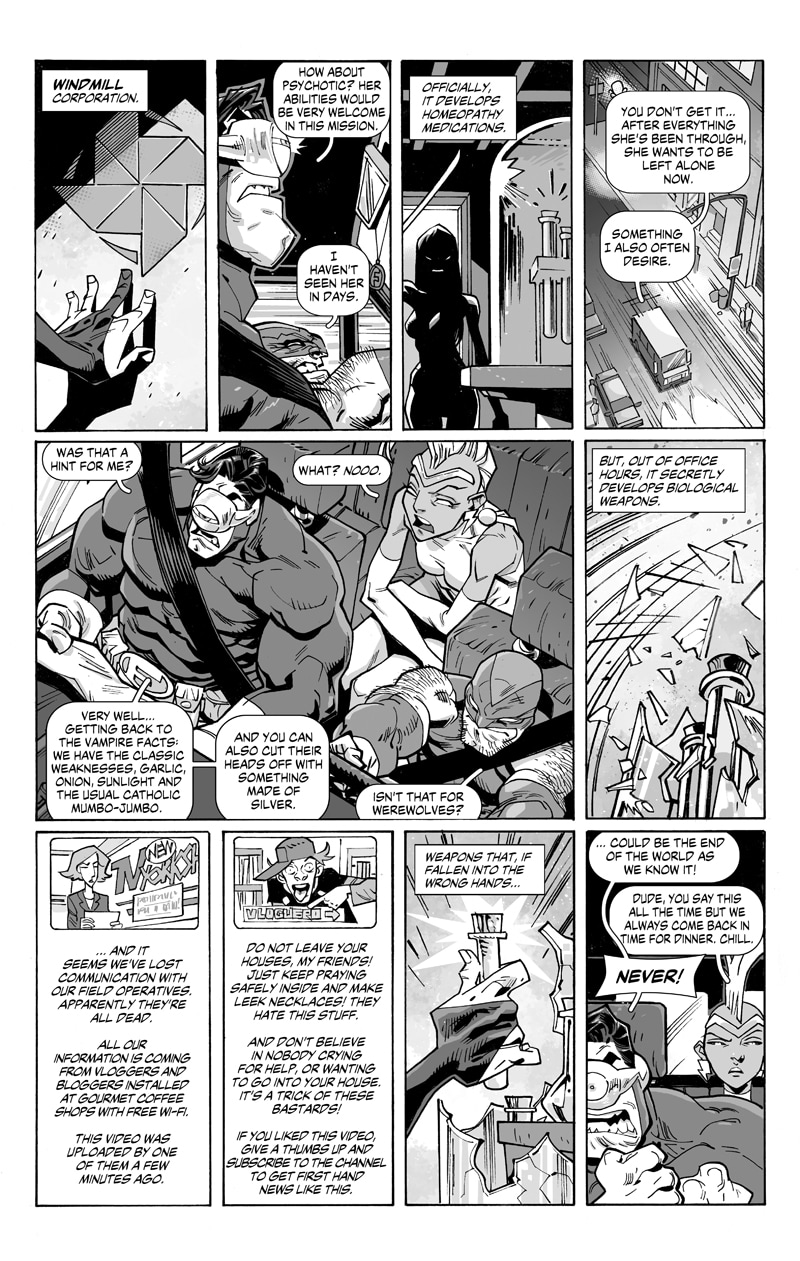 In this adventure, our "heroes" face unlikely enemies such as the persevering Brotherhood, whining vampires, starving zombies, and to make things even worse, under the command of a delusional leader.