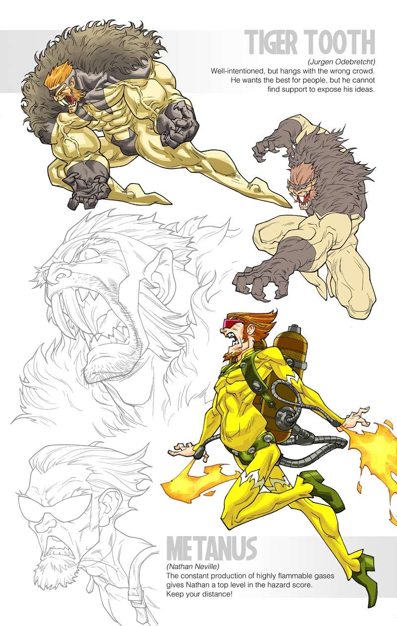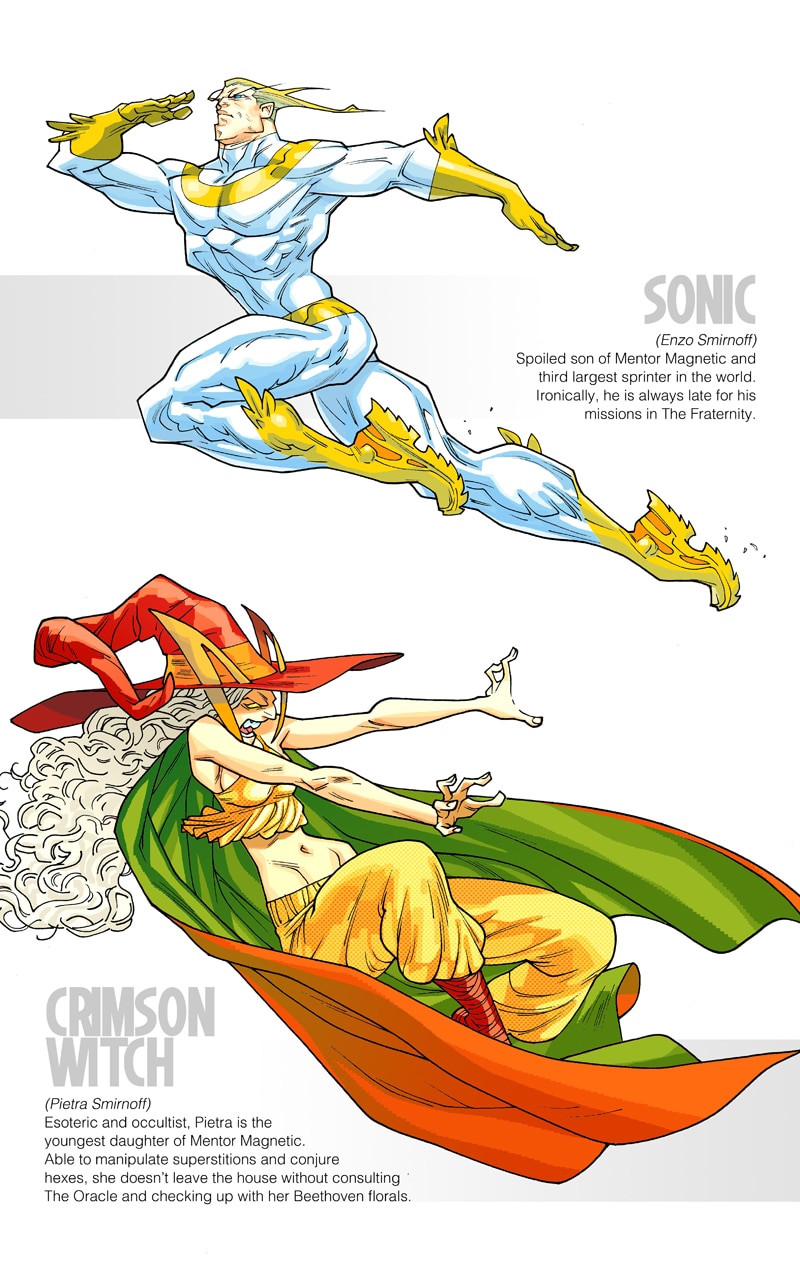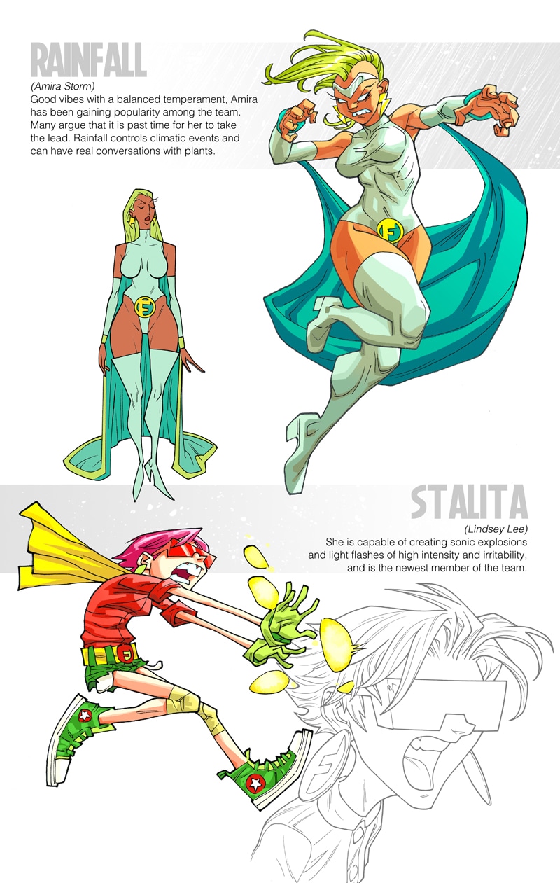A natural born leader called Eyeball, the impetuous Mongoose, the good vibes Rainfall, the misunderstood Demonico, the feisty Telegirl, the teen wonder Stalita and the almost invulnerable Metalovski, are all part of one of the most famous and greatly monetized group of heroes on the planet! Under the baton of Baldy, CEO of the team, they will defend the world and protect society’s best interests. They are the FABULOUS!