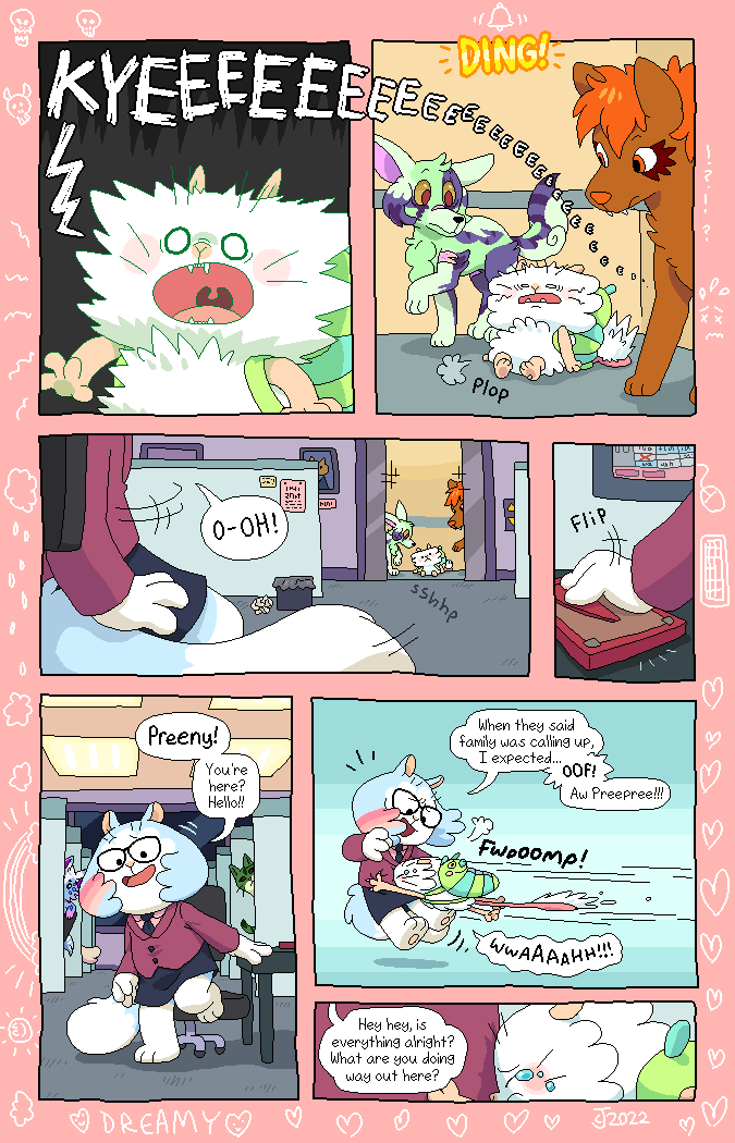 Most of the character designs were bought (adopted) from children on DeviantArt, resulting in a colorful cast of cats and dogs! The comic was made to be a love-letter to the creative minds of these kids. Credits to the original designers will be in the page description as they appear. The comic is all-ages.