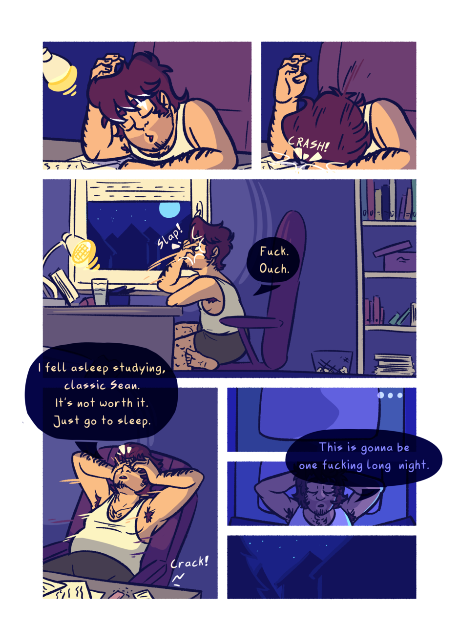 Uploads as Webtoon-ified Parts (4 Pages) monthly, Tapas Single Pages usually weekly (Irregularly) and Instagram Panel-Posts every other day. No guarantee since I'm in college :)