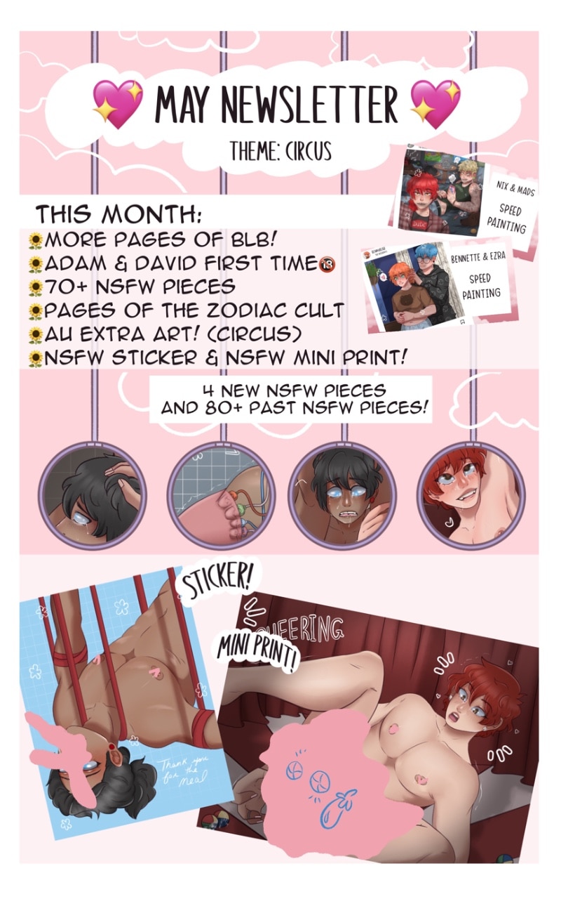 Patreon is currently 30+ pages ahead with TONS of tame & spicier content like 4 NS-FW pieces a month, Character Audios, AUs, Monthly Stickers AND MORE!