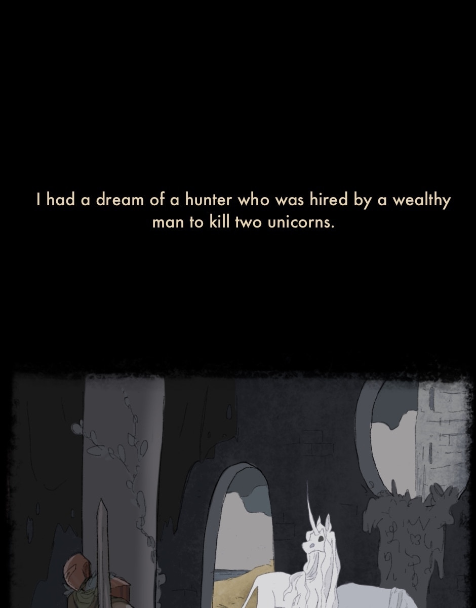 Saige, have you seen The Last Unicorn? Because your designs reminded me of that film! Also, this dream is exactly like a classic, old fairytale