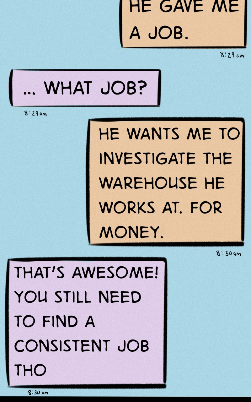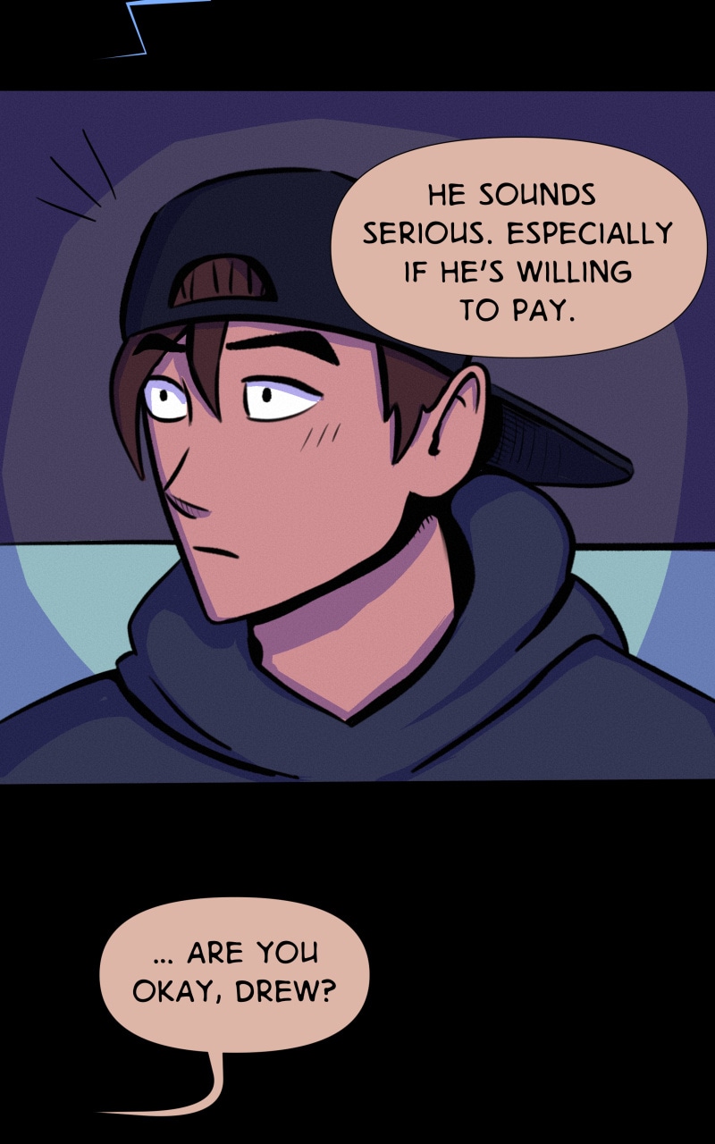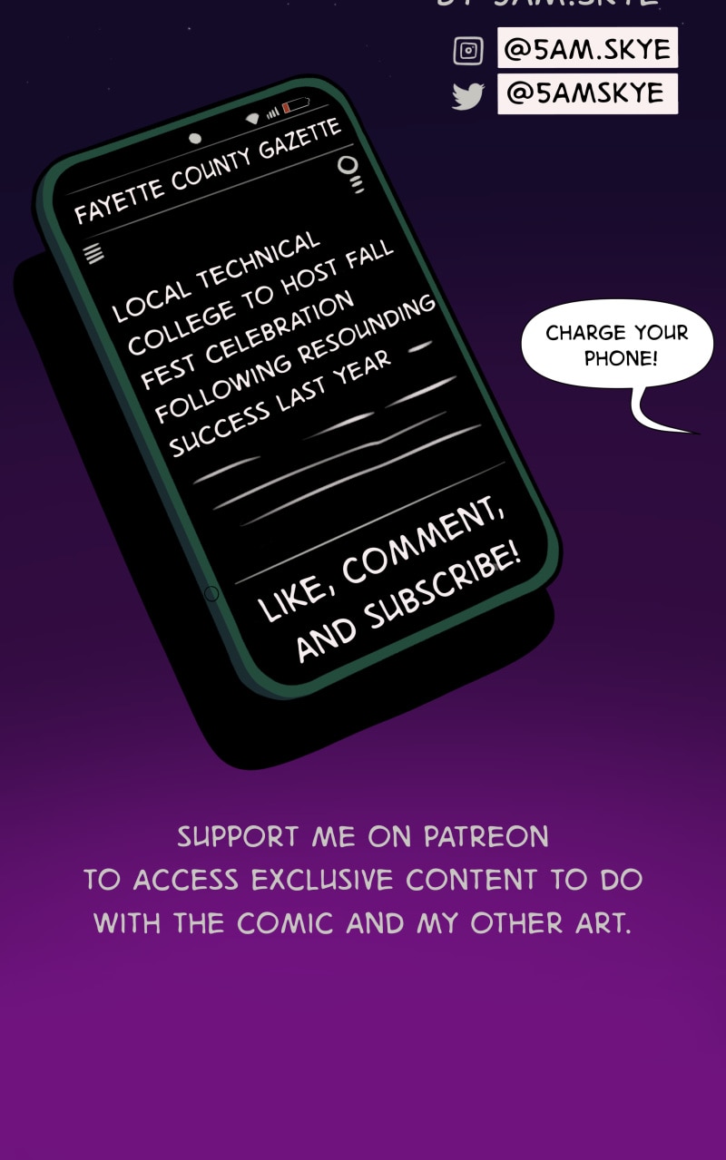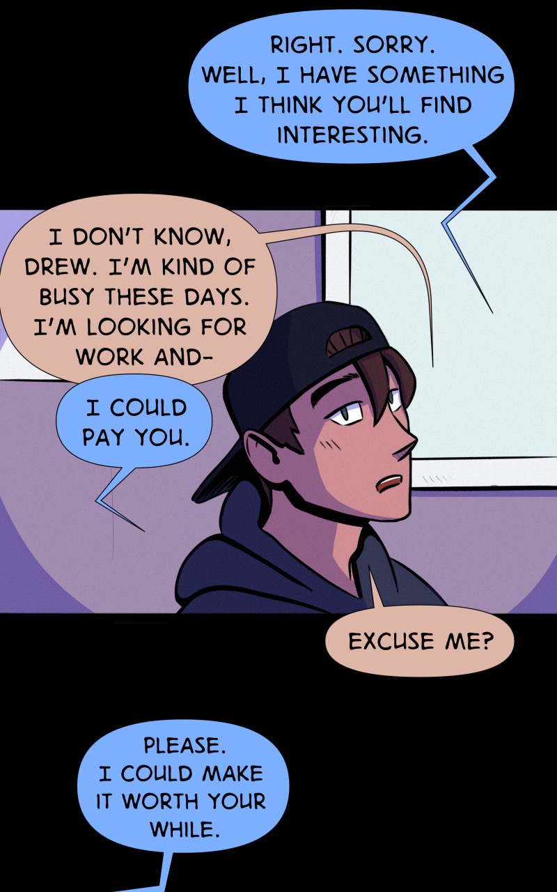 This episode has been revised! Strange Harbor will return on Friday, April 22nd. I plan to hone my style, tighten up the color palette, and work on pacing. Very excited to keep working on this project! Stay tuned - Skye