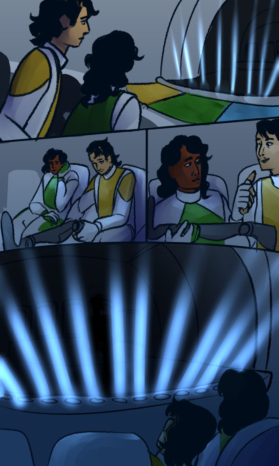 A dark scifi satire set in the corporate hellscape of the Tazdahir, featuring: Alya, soap opera addicted technician; Rahat, a nervous wreck pilot; Qamar, a disillusioned medic and Najm, a surprisingly kind murder machine. they are sent on a series of missions by their evil corporate overlord to stop union uprisings, retrieve goods and destroy rival companies. but along the way they find things don't add up and that something is being hidden from them. something very important.