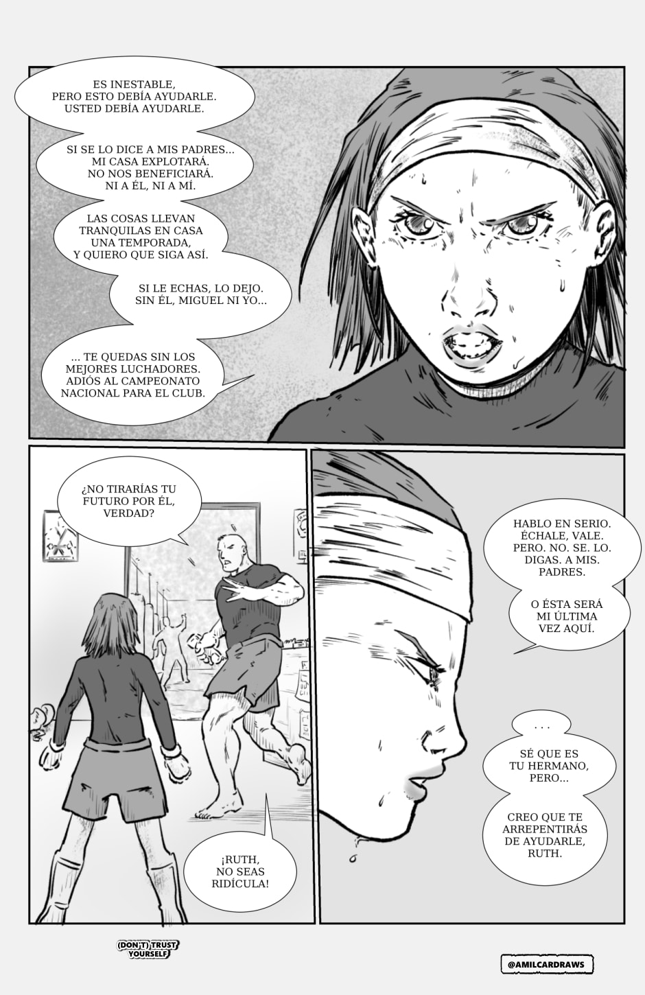 (Puedes descargar los capítulos 1 a 3, con páginas extras de contenido, en itch.io, gratis, para leerlo en alta resolución https://amilcardraws.itch.io/trustesp )