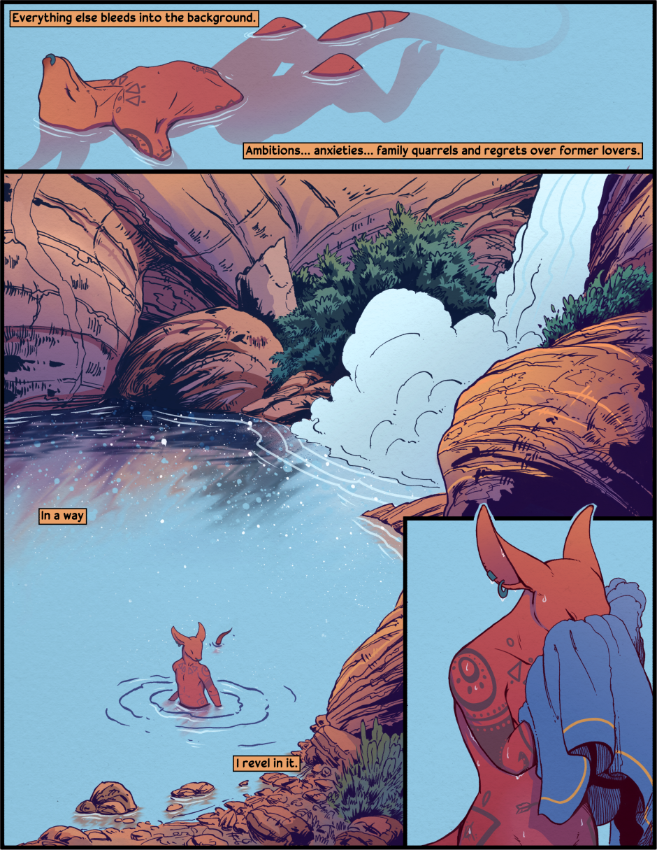 Apologies for the delay in uploads. Got sick + had some other stuff going on. Also sorry for any inconsistencies on this page - inked it months ago when I was still figuring out the overall look of the comic.