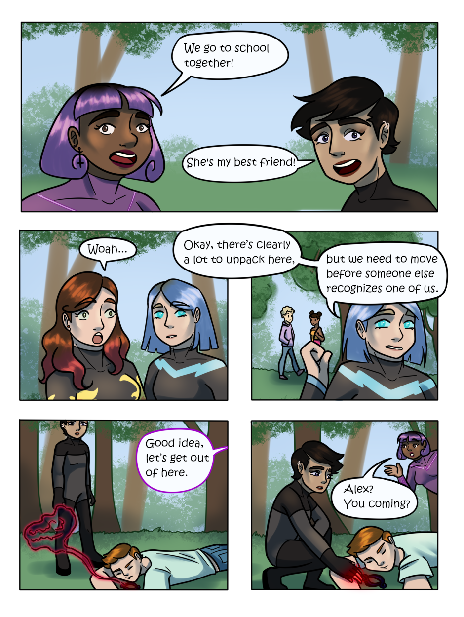 After gaining the power to control shadows in an event known as an Energy Bleed, 16-year-old Alex Martinez is tasked by a ghoul named Shady to find a mysterious artifact. Along the way, she is invited to join a team of other teen superheroes and must choose what is most important to her – her new friends, or greater power.