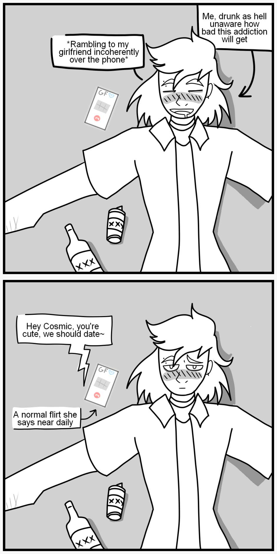 That was not the proper response to her flirt but I was also incredibly drunk. That was the start of a very bad addiction that landed me in the psych ward no more than three months later.