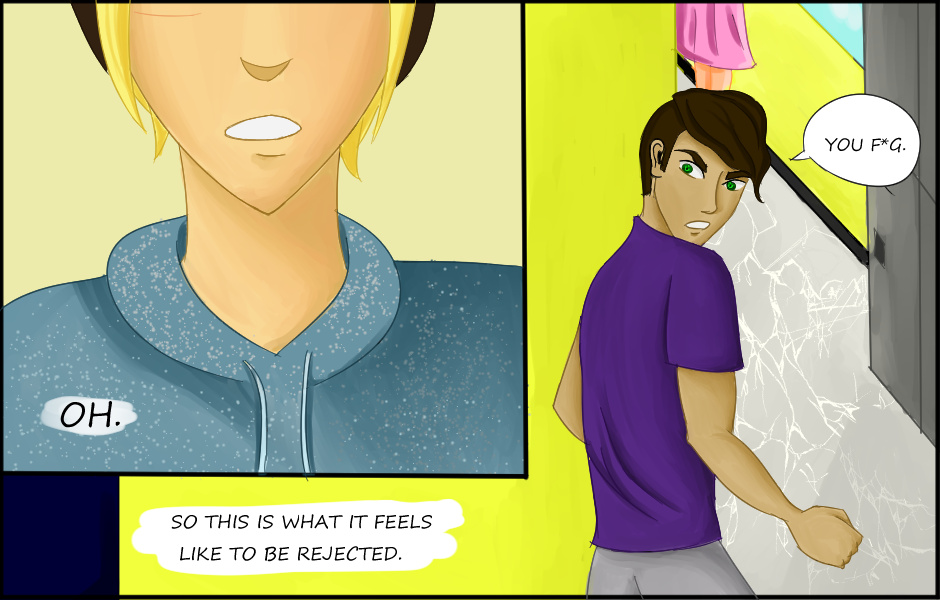 I like the art, but how did they meet? Did he use a cheesy pick up line? Does this take place in a high school? ??? Keep going though, I can tell you put a lot of work into this