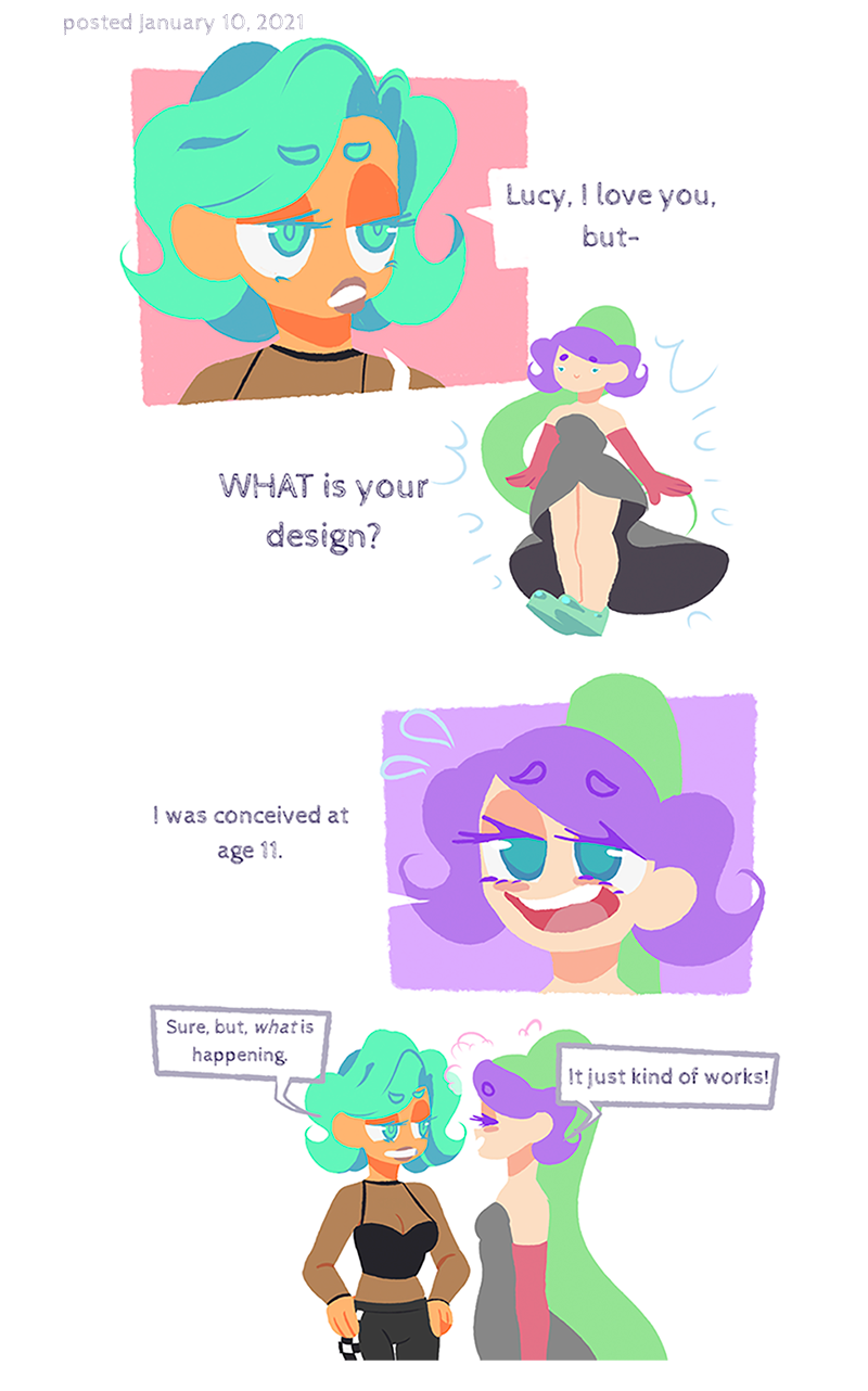 Lucy Sue and Counter Sue are twin creators/personae in a digital world which fictional characters come back to life through the internet's love once their stories have ended, and become self aware and perceptive to their online images. Lucy, Counter, and their creations struggle to exist everyday and grow in an oversaturated community!