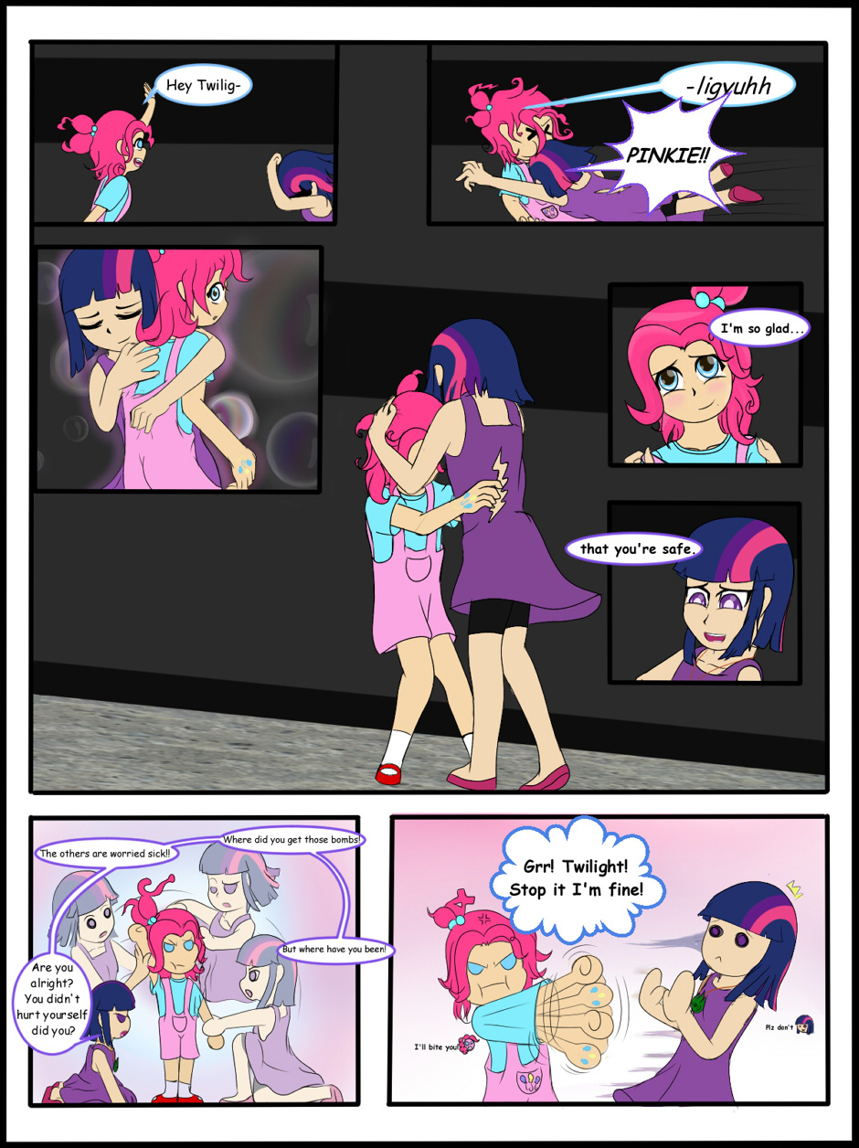 Spike, Rainbow Dash, and I kind of literally just stumbled into her one day as kids while we were traveling and she just kind of stuck with us. It was odd at first, but she grew on us emotionally and, after a time, we just couldn't bring ourselves to tell her to leave. Unfortunately... that's the problem. I... none of us, really know much about Pinkie's past. Any of us could tell what her favorite food, color, activity, or even obscure book was. But whenever the subject of what she was doing before running into us comes up, all she says is "we left" Who this "we" is still remains to be seen. Even now, as I leave to find new worlds, I still feel like the biggest mystery is in just the other room."