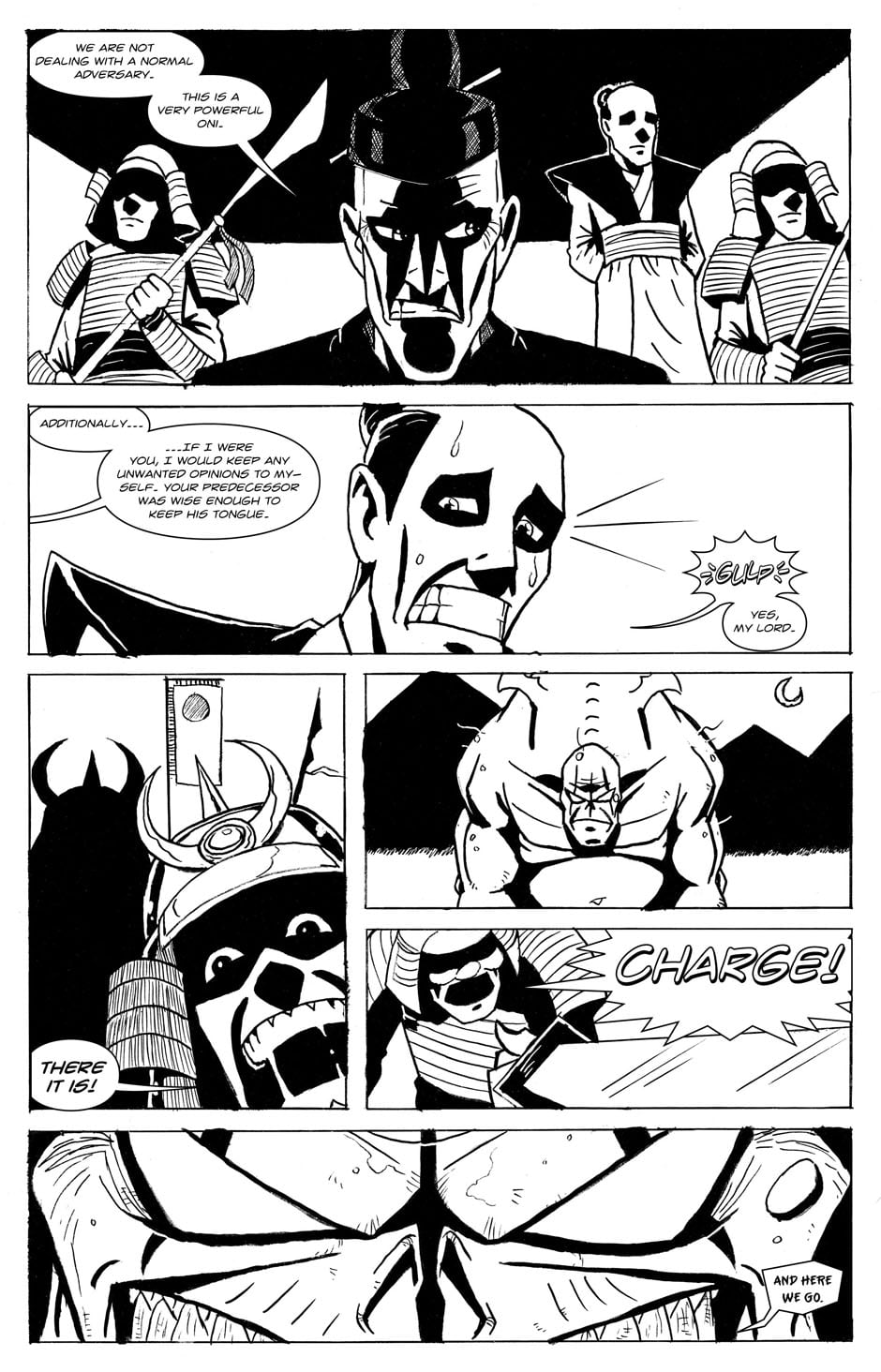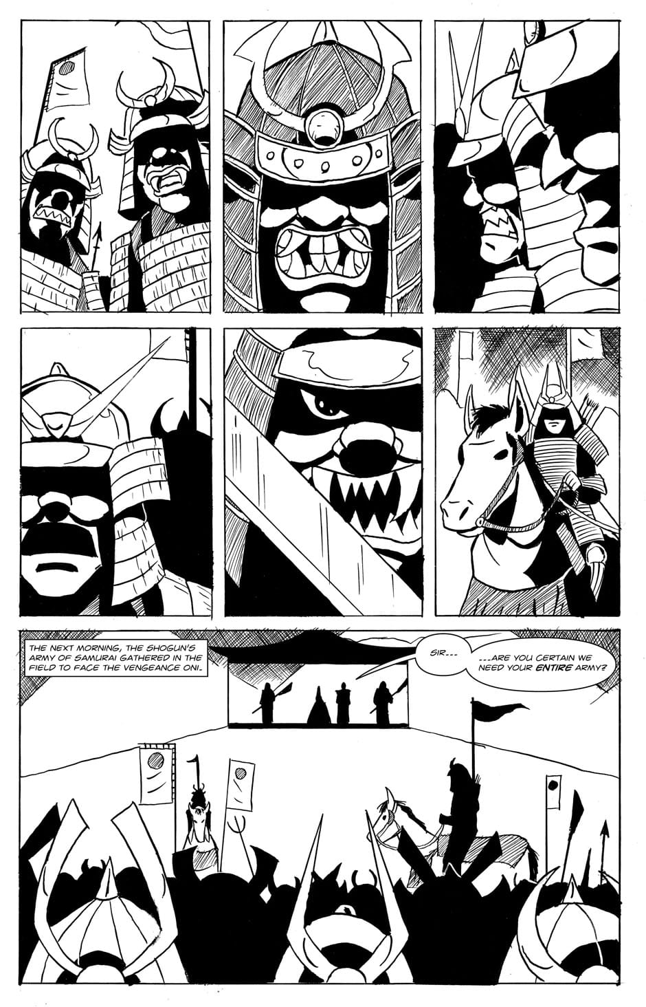 As the battle between the Vengeance Oni and the Shogun's men begins, the Shogun realizes he may be over his head.