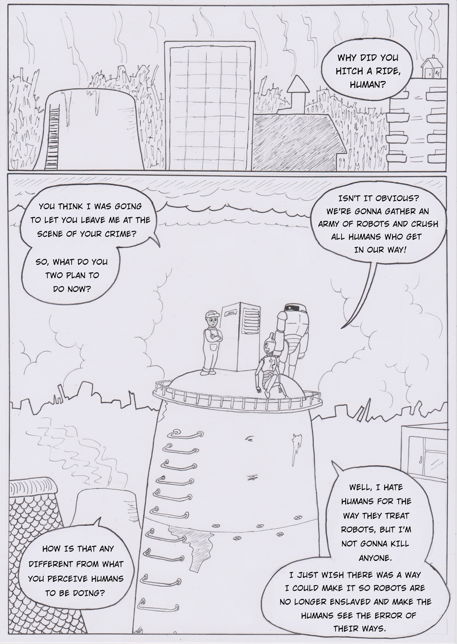 Set during a wave of industrial revolution, humans are reliant on robots for everything, and they are treated as nothing more than appliances. It is believed that robots are incapable of expressing emotions, independent thought or freewill. That is until one day, when a lowly Maintenancebot called Bolt decides to rebel against the humans after a traumatic experience awakens his consciousness. After becoming a wanted criminal, Bolt goes on a journey to gather up like-minded robots and dismantle the fabric of human society.