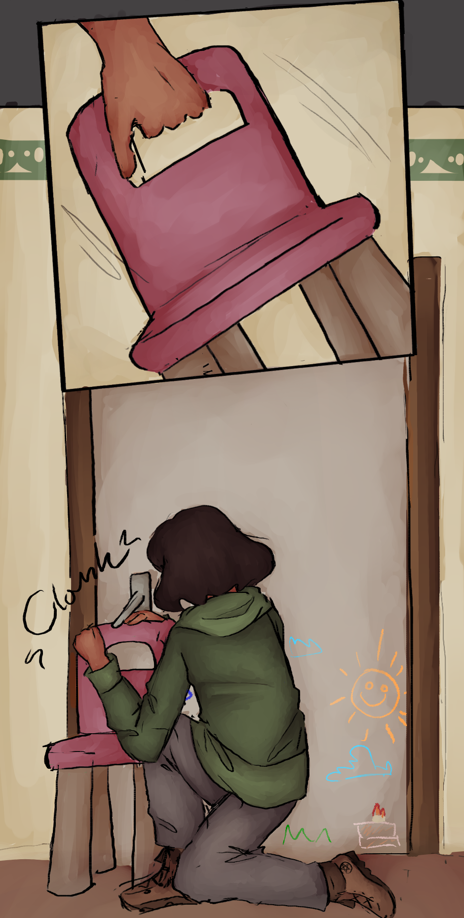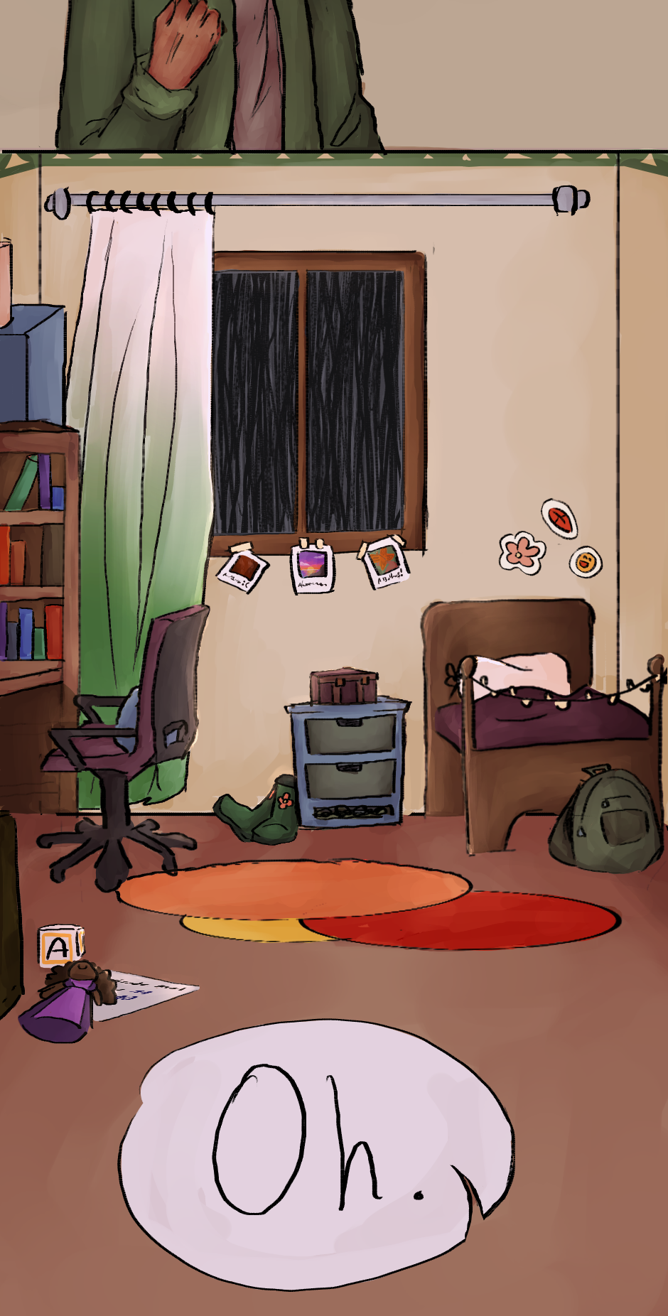 ALSO big thanks to my friend Rain (@hopelessly.exe on instagram!) for helping me and doing the flat colors and the reference for the room, go check his acc out they're really awesome !! :DD