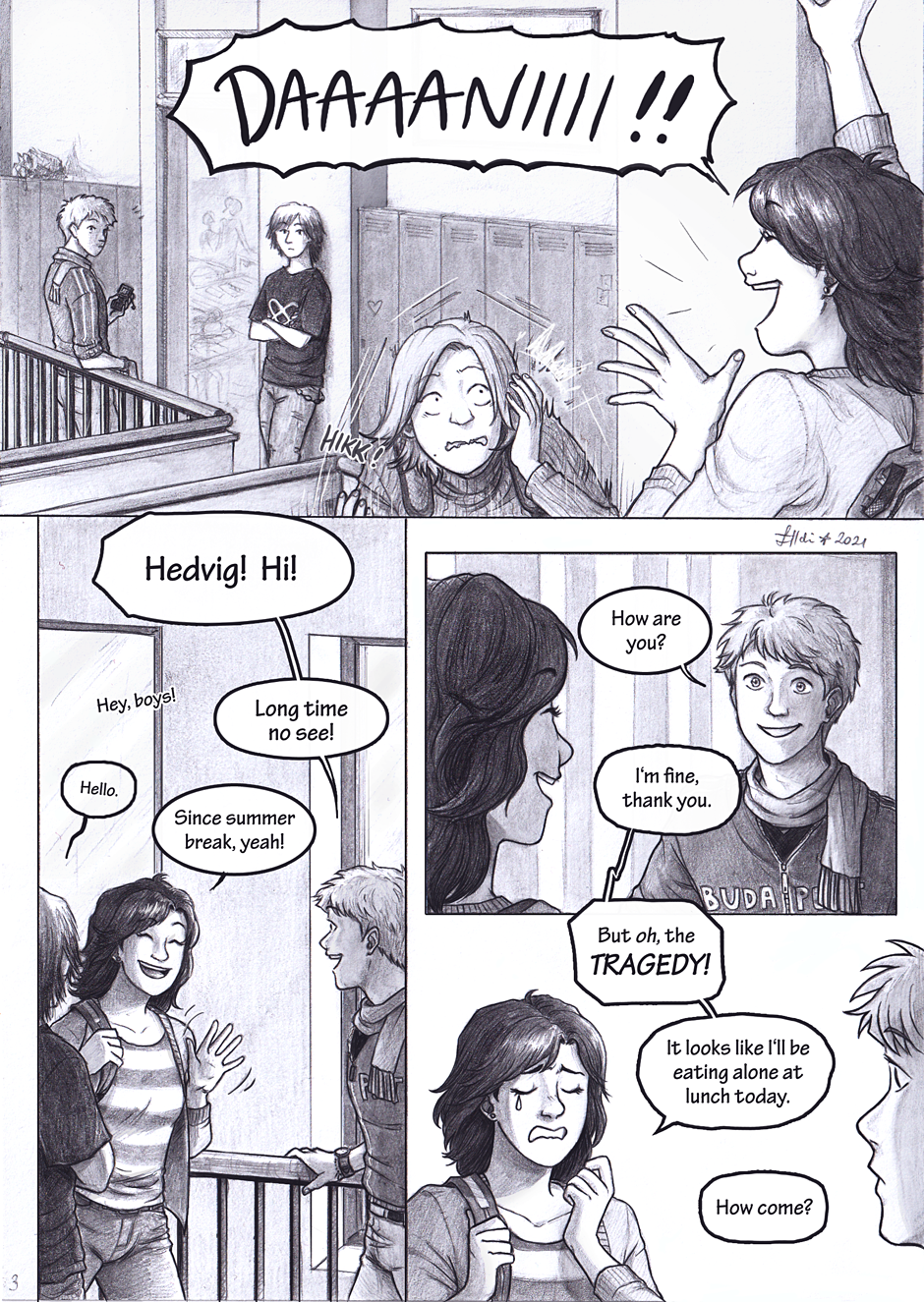 And here we meet our first main character, Dani! (That's "Dan" or "Danny" in Hungarian.) Hedvig apparently wants something from him.