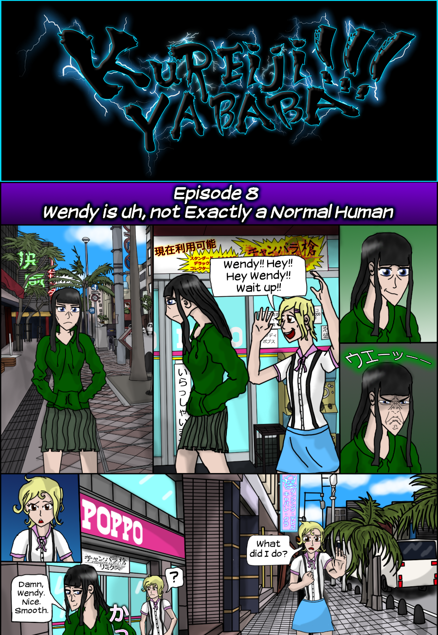 Kureiji Yababa!!! follows the bizarre adventures of the many people who call the coastal town, Kururicho, home. KuYa's main characters include teen rebel Ryuka Ryujima and her cohorts; Sally Jonesmith, who has to put up with her unusual sister Wendy; the sparking lovers, Sayuri and Rin; and many more.