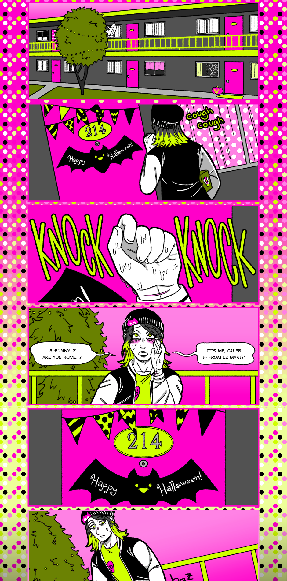 Chapter 5 starts with Caleb visiting Bunny's apartment on Halloween. Roughly a month or so in-comic-time has passed between this chapter and the last.