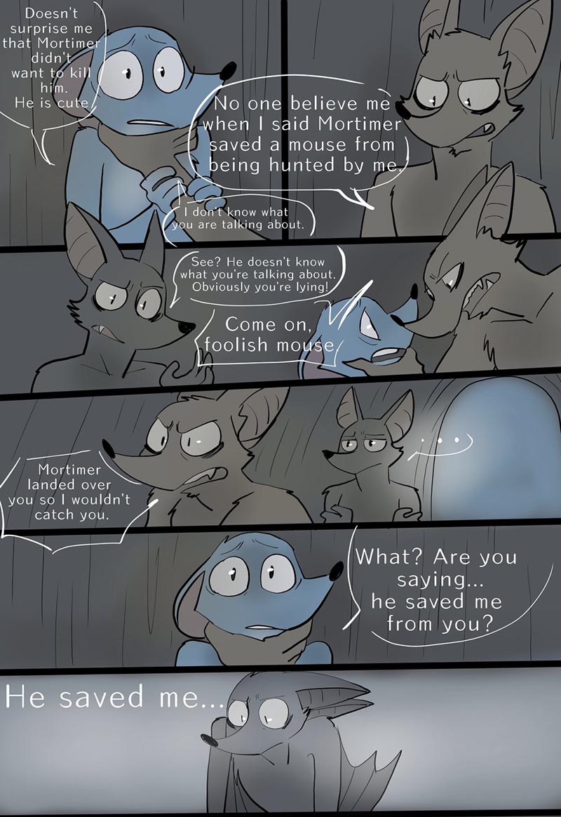 Montimer is a bat. He is a carnivore and a predator. Larry is a mouse, and he is nothing but prey. One day running through the forest, Larry is trapped by Montimer and is forced to raise a baby mouse in exchange for not taking her place as Montimer's dinner. But... is this bat telling the truth? Who is he? ..Maybe he's just an angel.