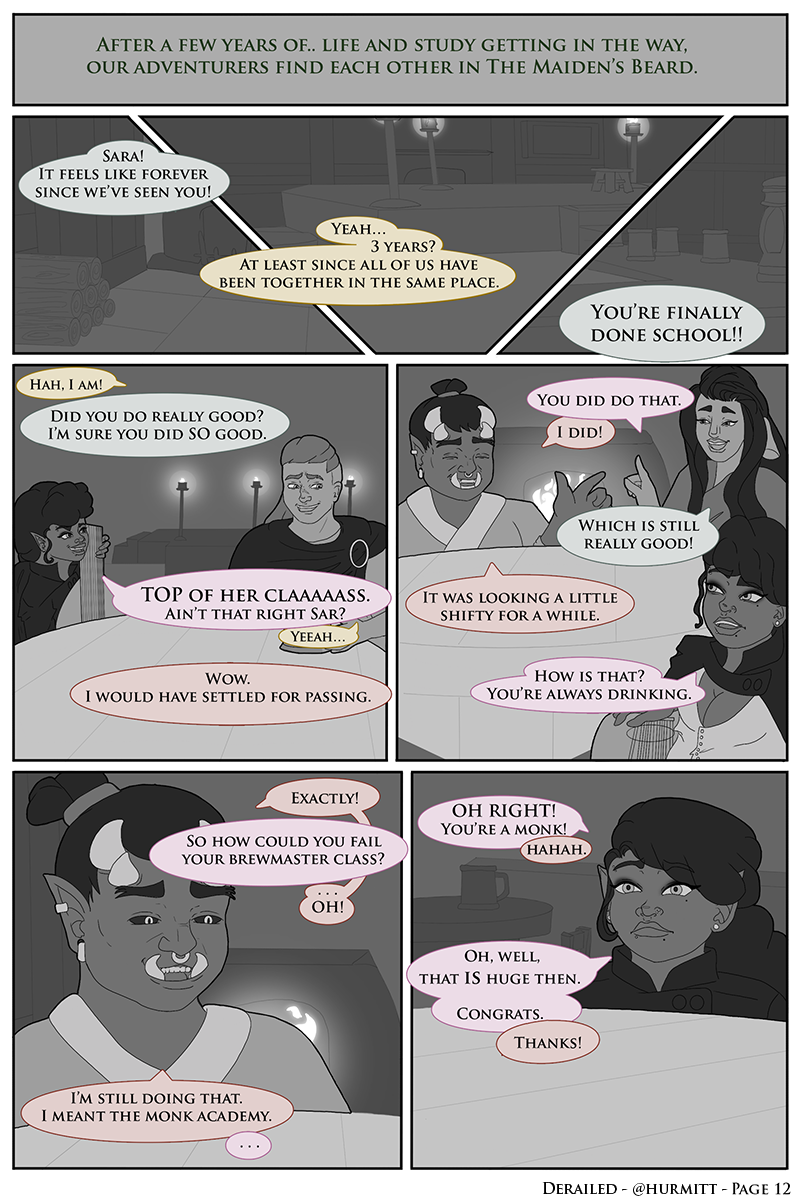 Derailed is written as though a TTRPG game is currently being played. There are dice rolls, internal monologues, and a GM throwing sass at their players.