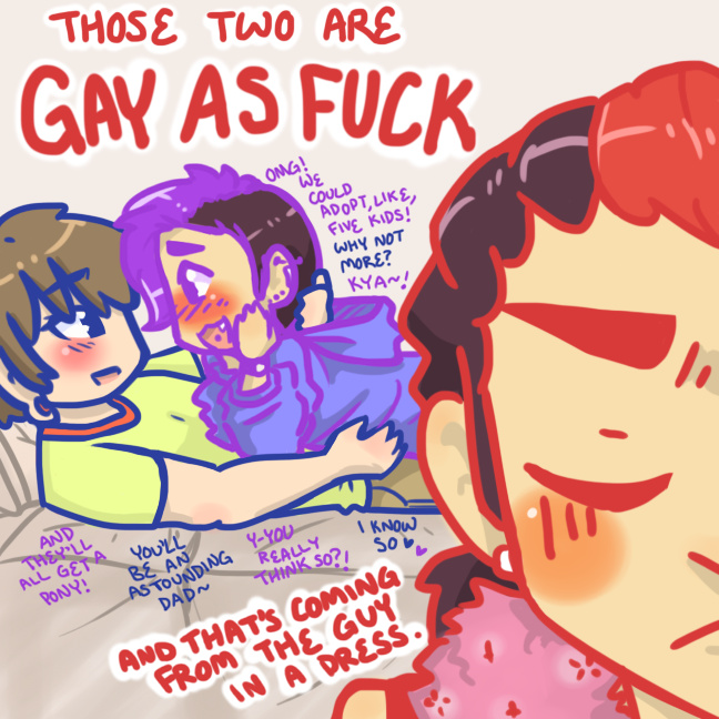 tfw you try to spend time with your brother and his boyfriend, but they can't stop cuddling, ogling each other, and talking about their future children.