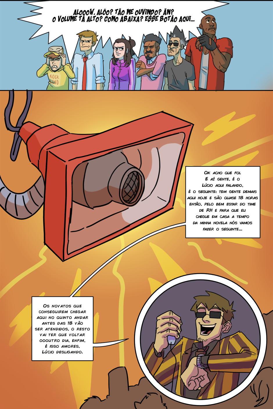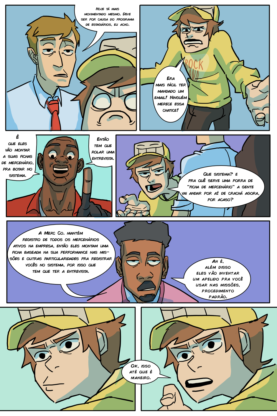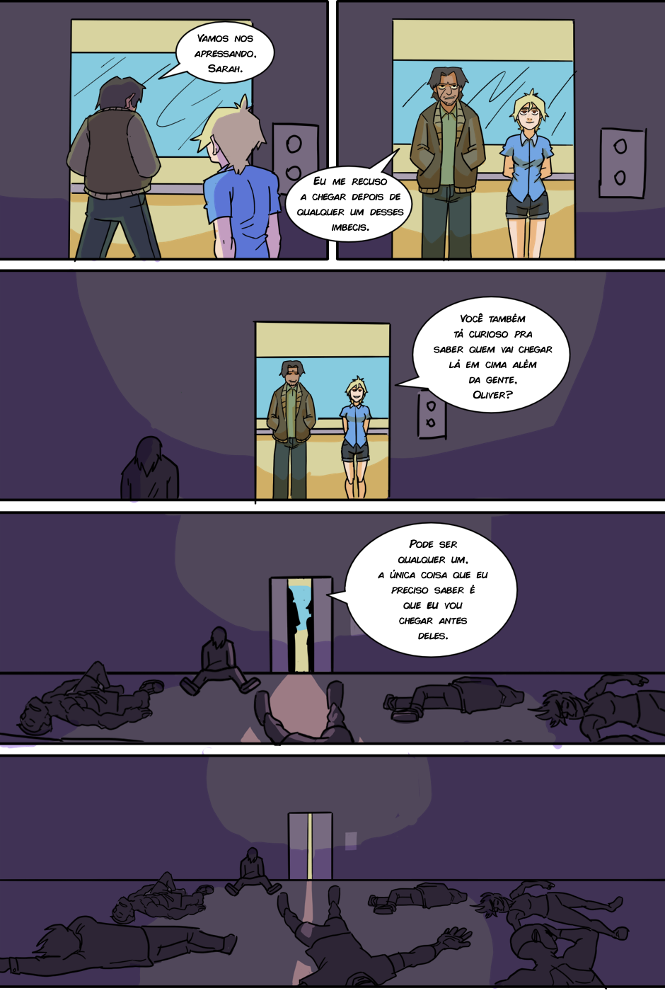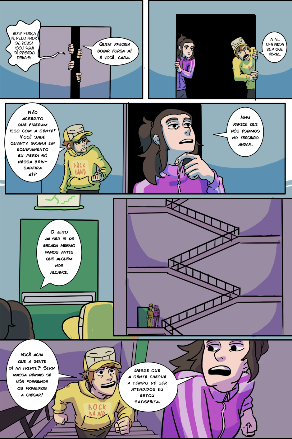 A espera acabou! (porque o RH tá sem paciência de atender todo mundo) Agora Arthur e Kathy terão que chegar até o quinto andar antes do fim do expediente para serem contratados de verdade, senão um terrível destino os aguarda: Ter que pegar a fila de novo amanhã...