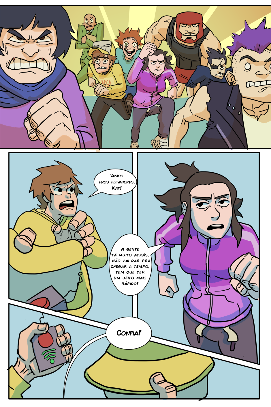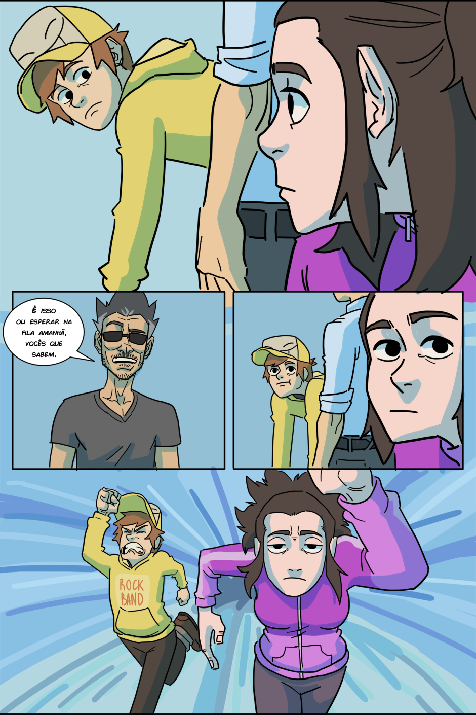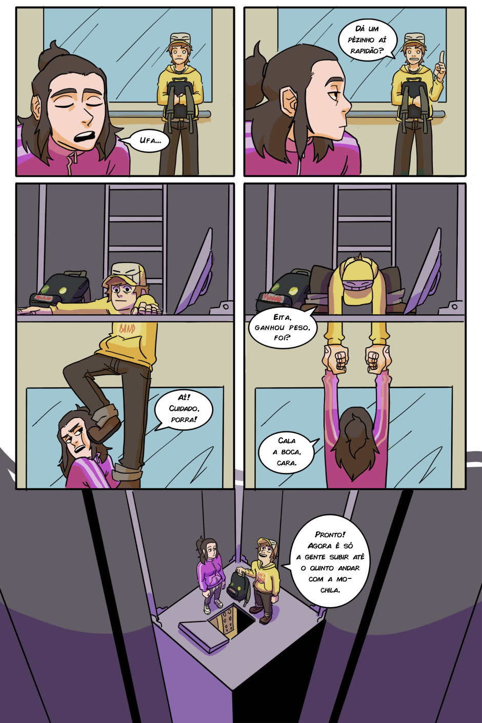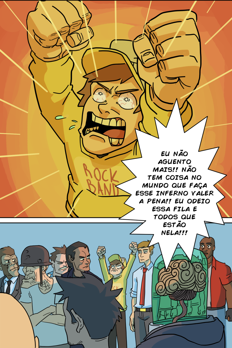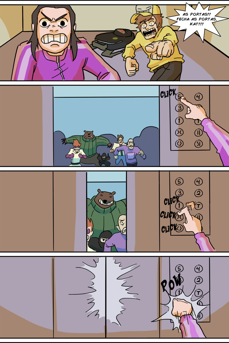 A espera acabou! (porque o RH tá sem paciência de atender todo mundo) Agora Arthur e Kathy terão que chegar até o quinto andar antes do fim do expediente para serem contratados de verdade, senão um terrível destino os aguarda: Ter que pegar a fila de novo amanhã...