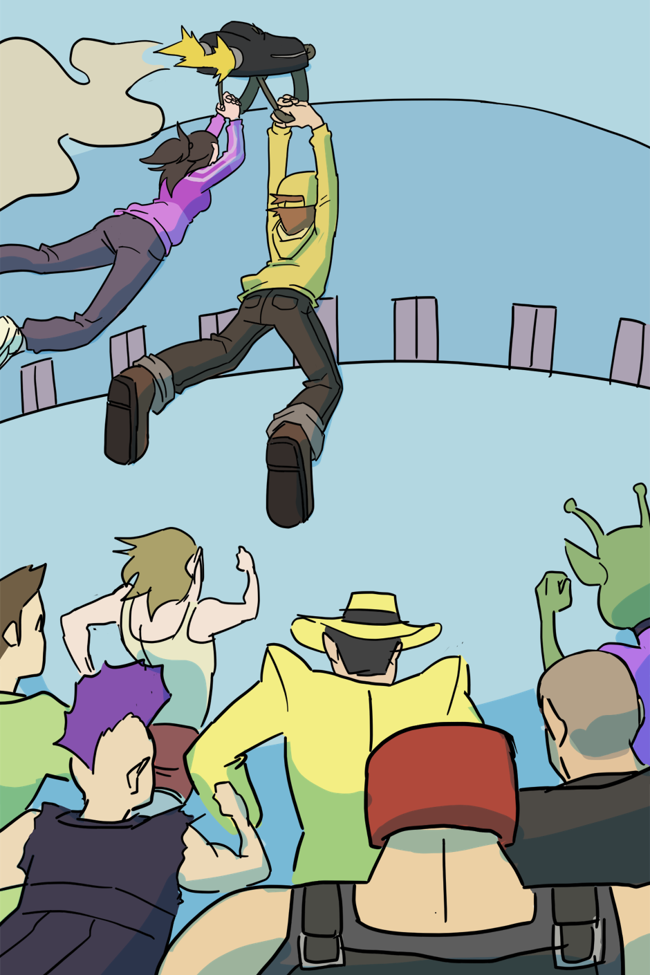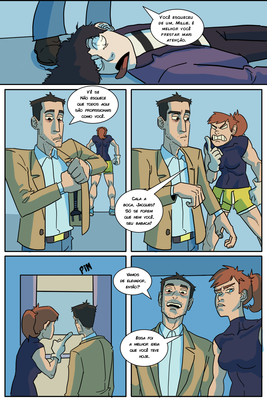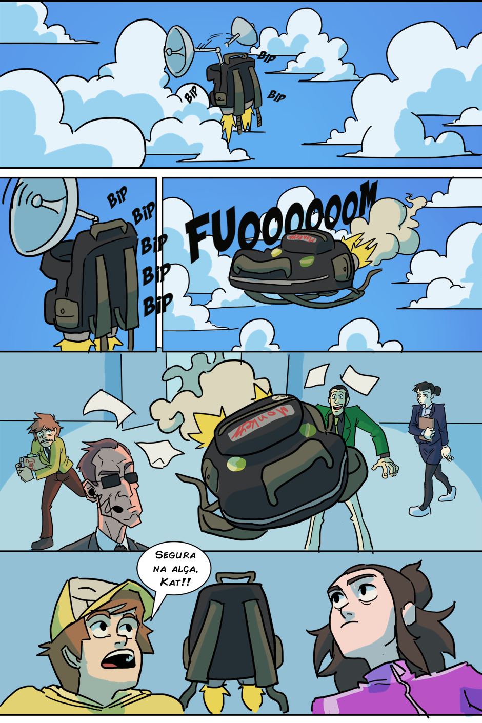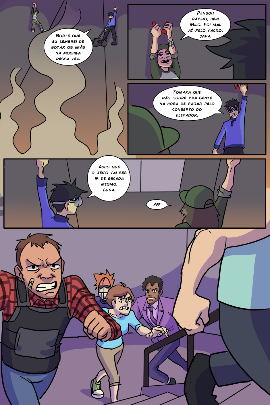 A espera acabou! (porque o RH tá sem paciência de atender todo mundo) Agora Arthur e Kathy terão que chegar até o quinto andar antes do fim do expediente para serem contratados de verdade, senão um terrível destino os aguarda: Ter que pegar a fila de novo amanhã...