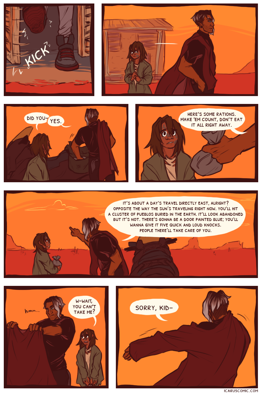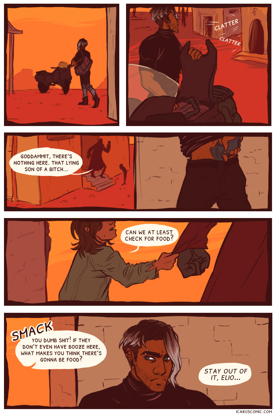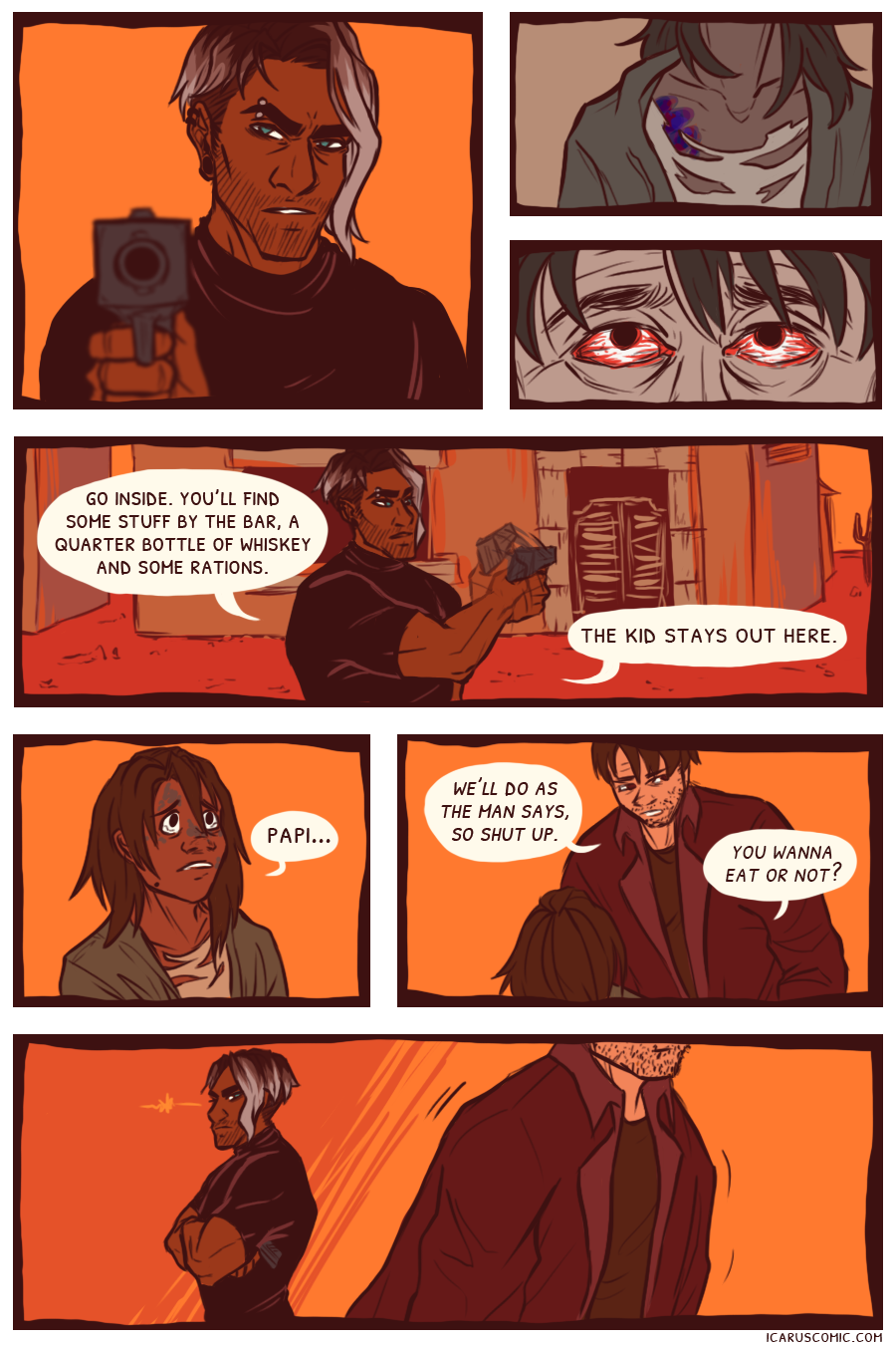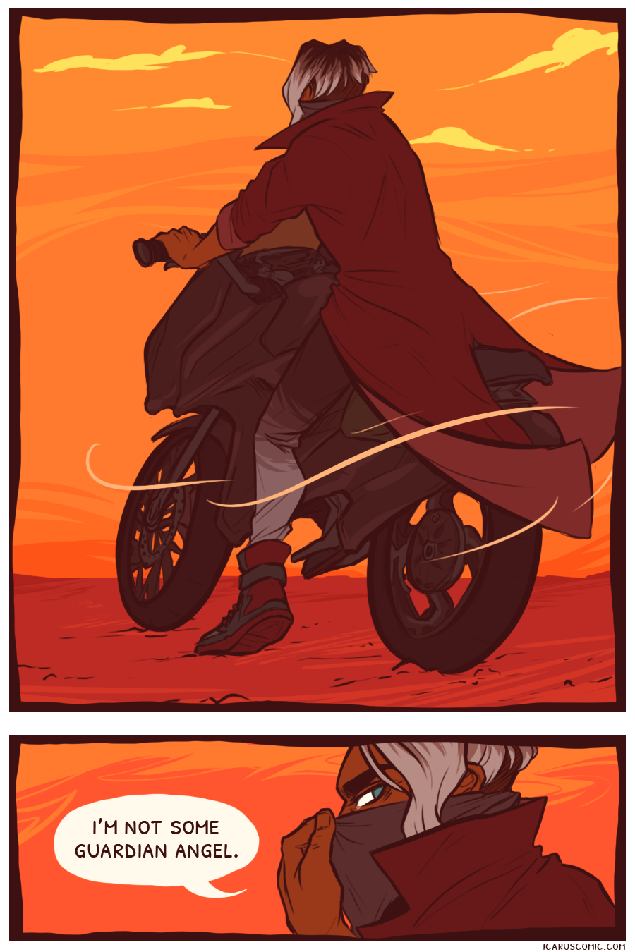 This webcomic is an exploration of light, darkness, and the relativity of moral ambiguity. Follow the unlikely pair of Icarus and Elio as they discover one another's weaknesses and strengths through an action-packed journey through the wasteland.