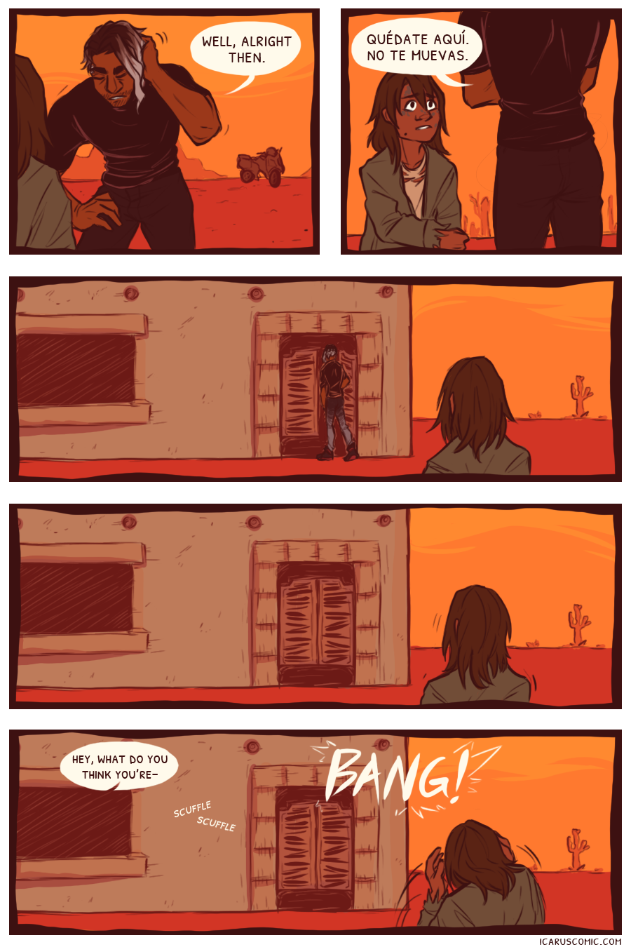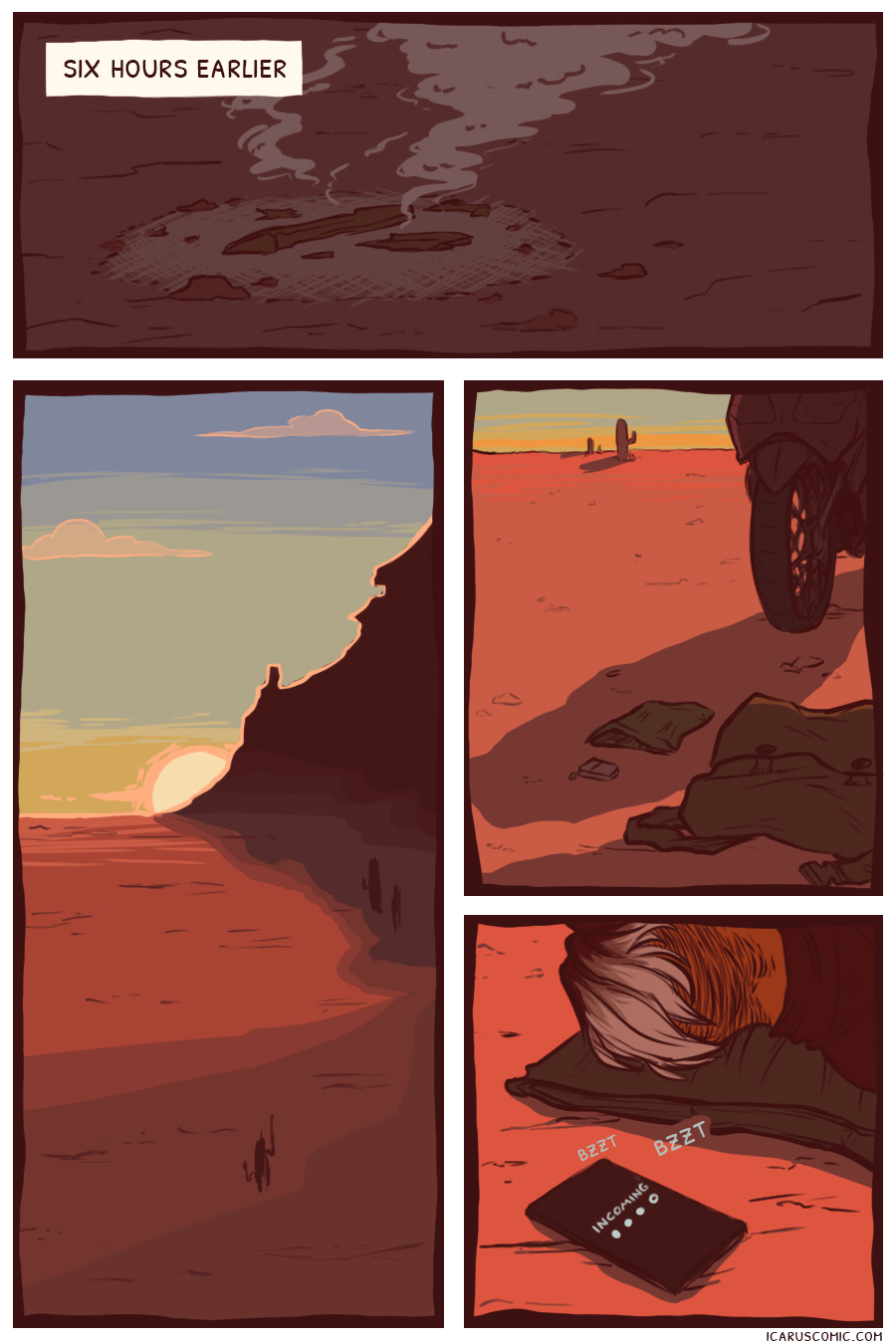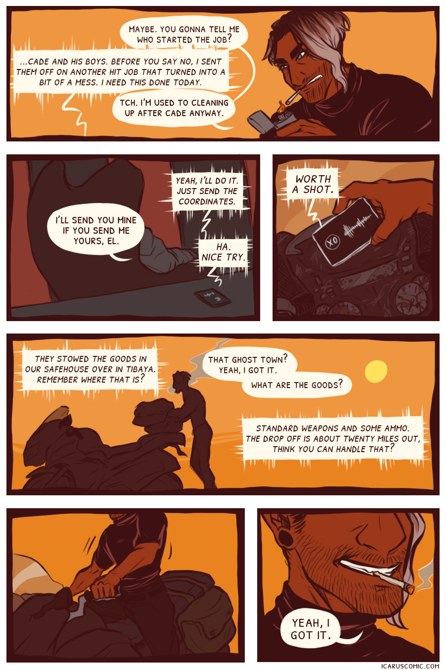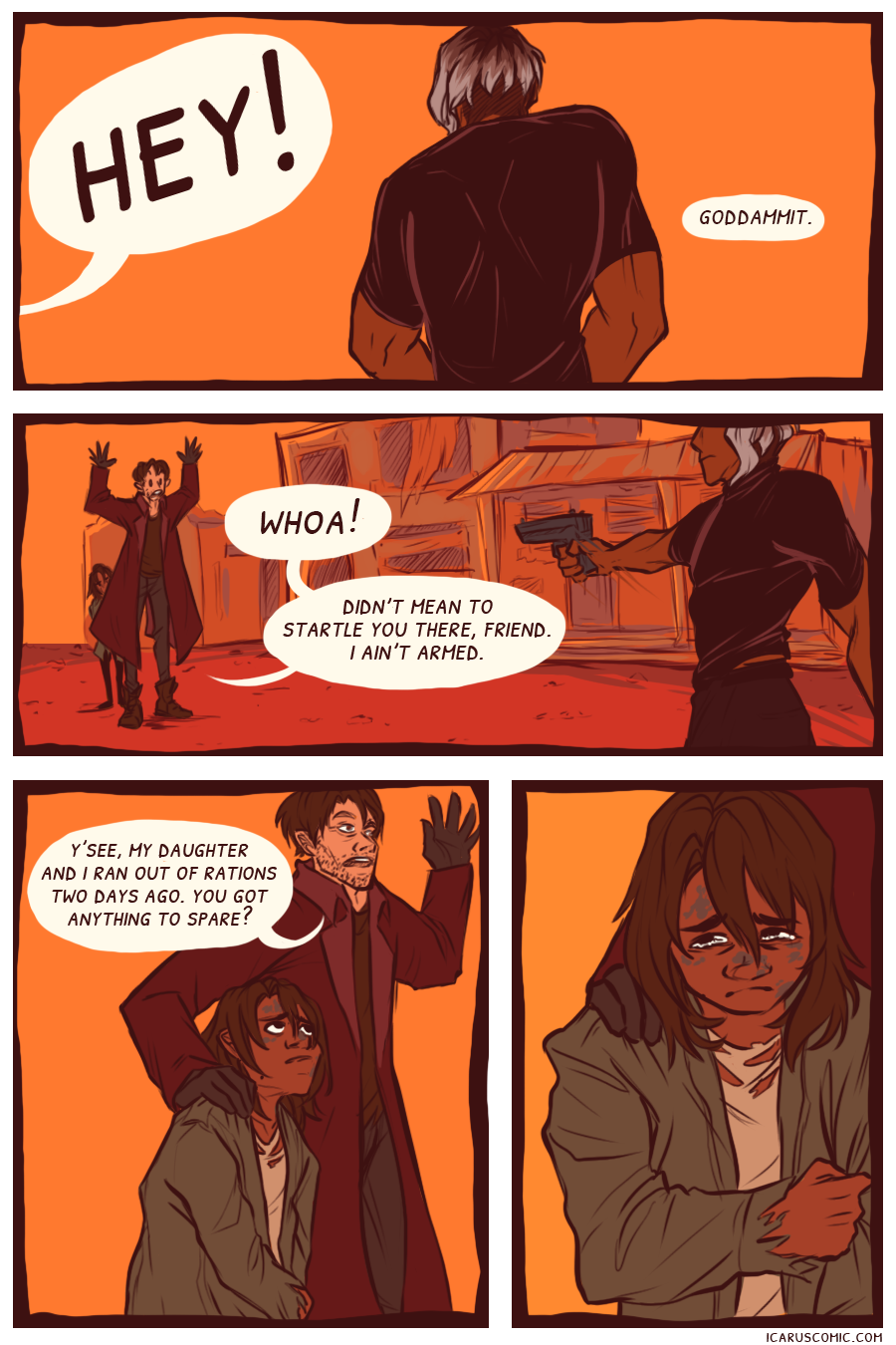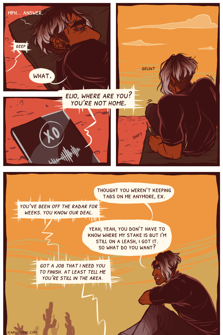 This webcomic is an exploration of light, darkness, and the relativity of moral ambiguity. Follow the unlikely pair of Icarus and Elio as they discover one another's weaknesses and strengths through an action-packed journey through the wasteland.