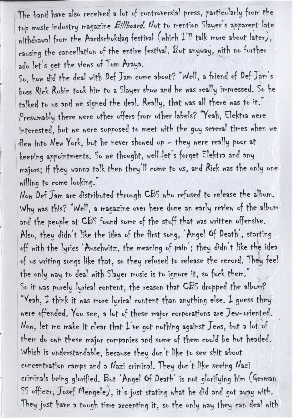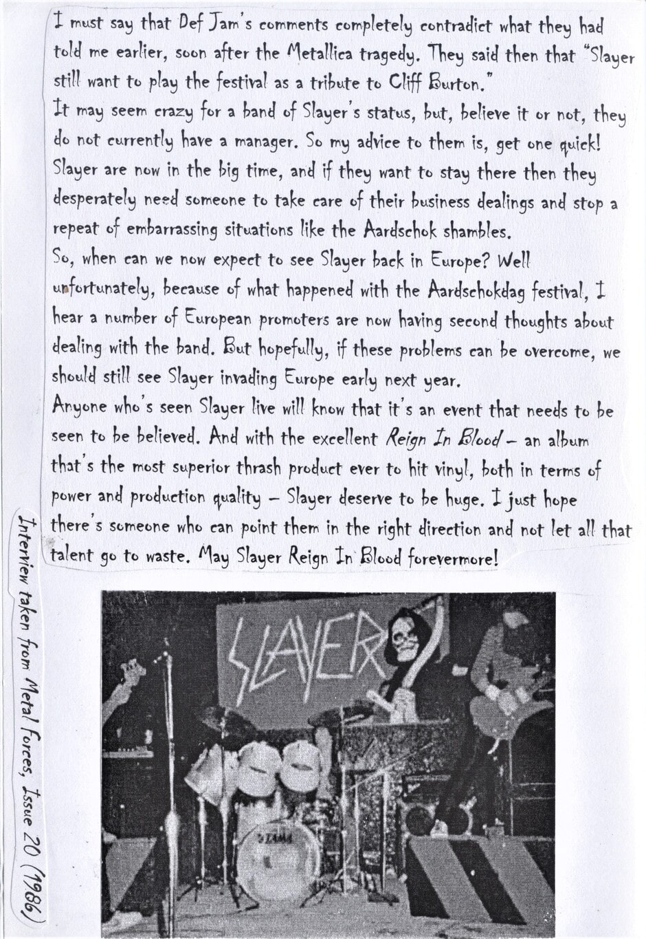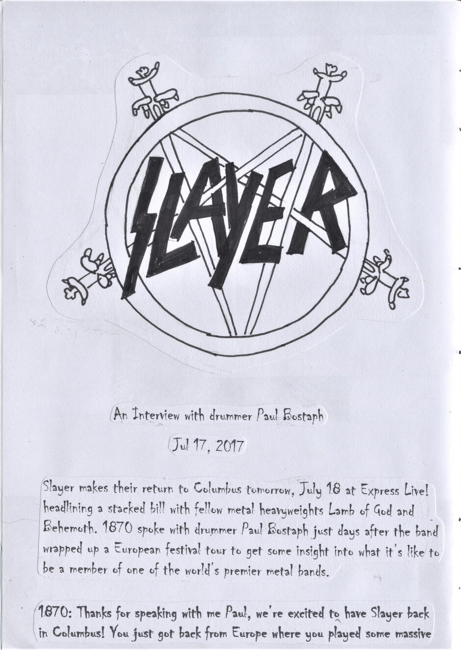 I am back with another zine, featuring Slayer this time!!! I have to thank ya'll for the support my zine has reicived and I hope more people will read it in the future! -Rory